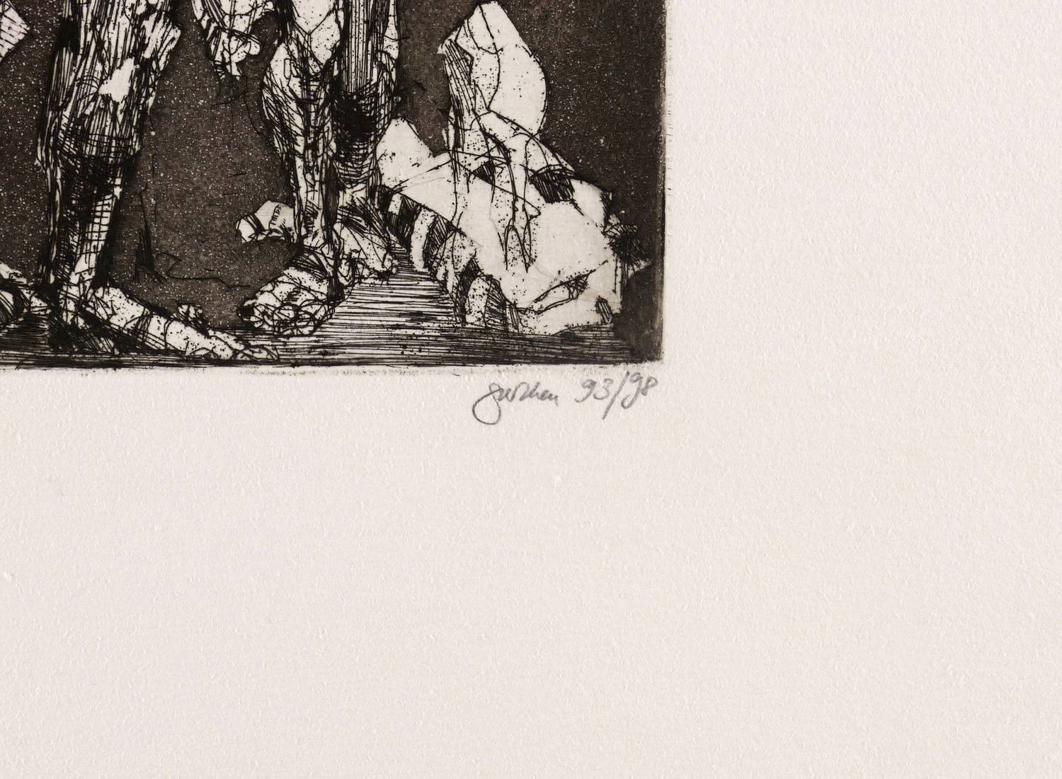 1998. Radierung / Aquatinta, Strichätzung & Vernis mou, in Schwarzbraun, auf hellgrau getöntem Velinkarton. – Originale Künstlergrafik, von Christine Perthen. – Auflage Exemplar Nr. 3/20. – 19,6 x 16,8 cm (Darstellung / Platte), 54 x 40 cm (Blatt).