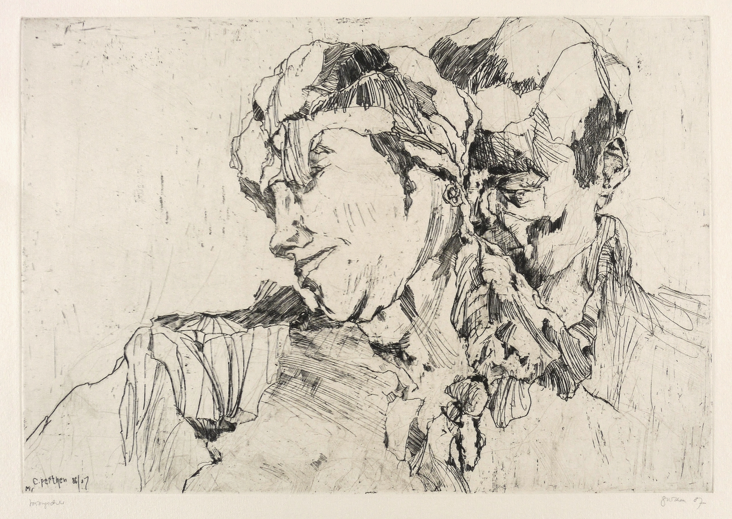 Christine Perthen (1948 Pirna - 2004 Berlin). Deutsche Grafikerin und Zeichnerin, herausragende Radierkünstlerin des 20. Jahrhunderts. 1966 Abitur. Anschließend Berufsausbildung zur Industrienäherin. 1967-72 Studium Modegestaltung an der Hochschule für bildende und angewandte Kunst Berlin-Weißensee. Ab 1976 Meisterstudium bei Werner Klemke an der Akademie der Künste in Berlin. Ab 1977 Lehrauftrag an der Kunsthochschule Berlin-Weißensee. Nach freiberuflicher Tätigkeit als Grafikerin erhielt sie 1993 eine Professur an der Kunsthochschule Berlin-Weißensee. 2006 Gründung der Christine-Perthen-Stiftung an der Berlinischen Galerie; fünfjährige Auslobung des Christine-Perthen-Preises für Radierung.
