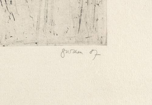 Rechts unten in Bleistift signiert und datiert: ″Perthen 87″. Links Auflagenbezeichnung: ″Vorzugsdruck″. In der Platte links unten Signatur und Jahr: ″c. perthen 86/87″. Wasserzeichen der Hahnemühle. – Hervorragend erhalten. Sehr guter Zustand.