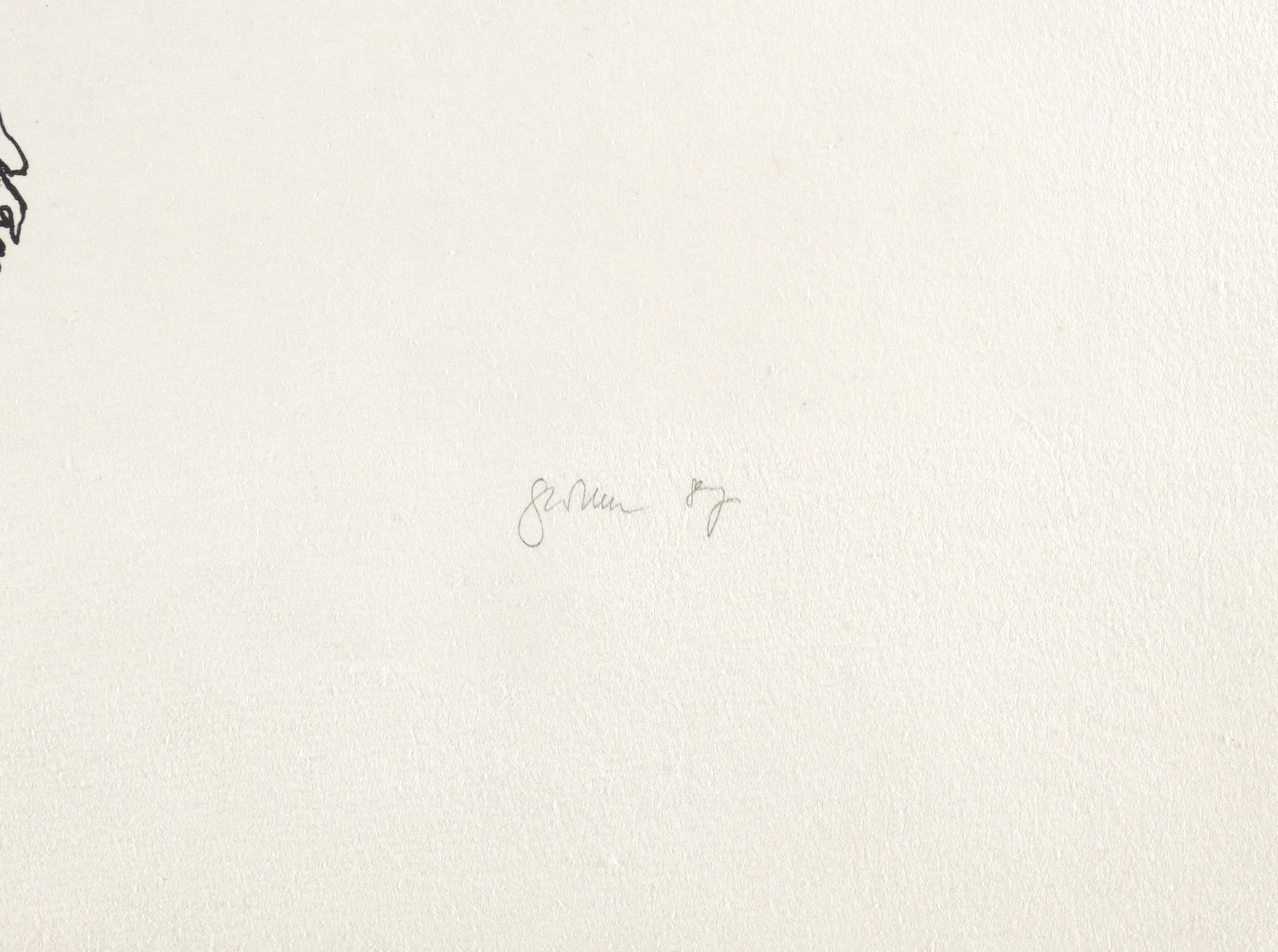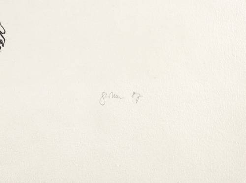 Rechts unten in Bleistift signiert und datiert: ″Perthen 87″. Links Auflagenbezeichnung: ″Probedruck″. Verso bezeichnet: ″Großes stehendes Paar″. Wasserzeichen der Hahnemühle. – Ohne Tadel. Sehr guter Zustand.