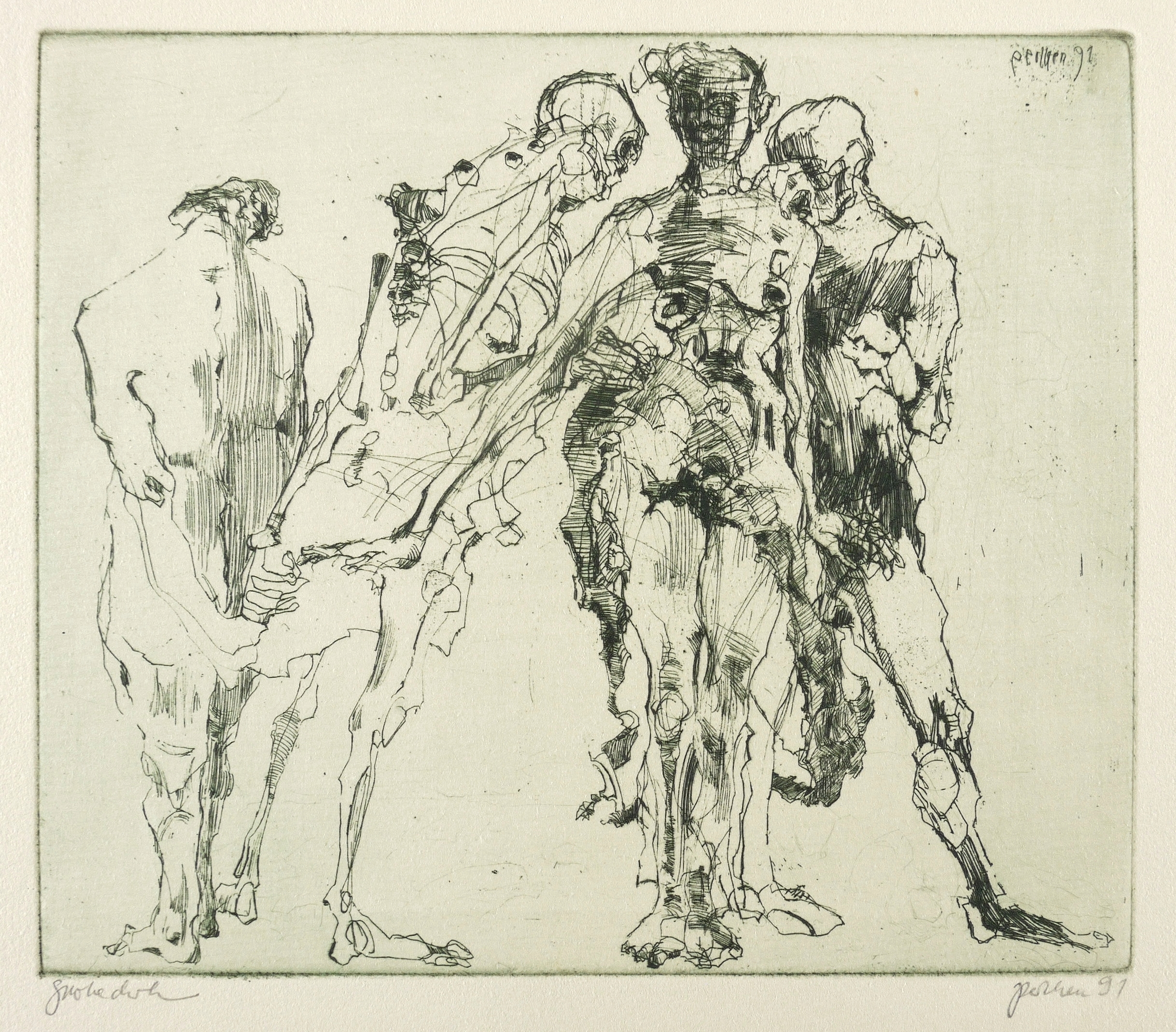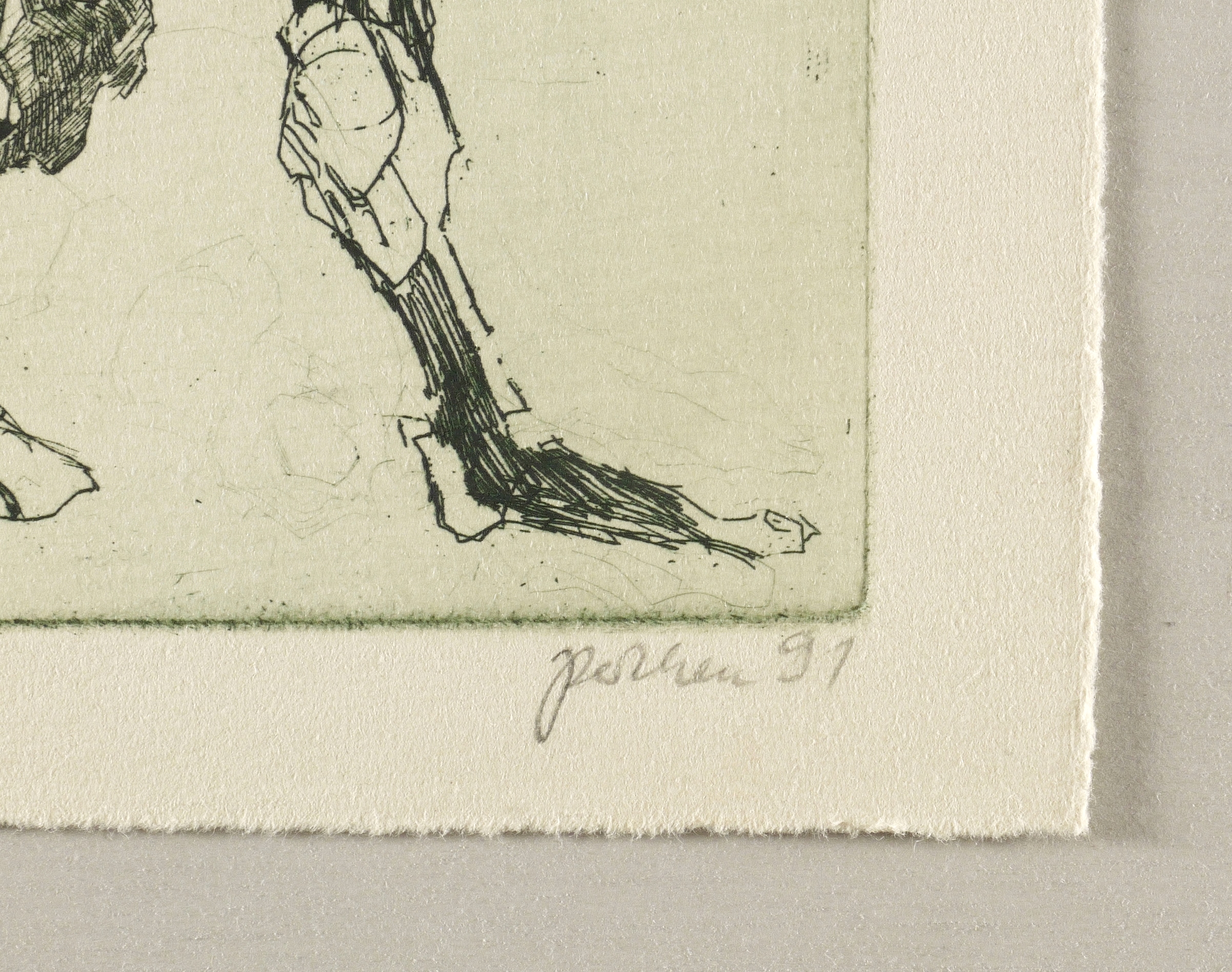 Rechts unten in Bleistift signiert und datiert: ″Perthen 91″. Links Auflagenbezeichnung: ″Probedruck″. In der Platte rechts oben Signatur und Jahr: ″perthen 91″. – Sehr guter Zustand.
