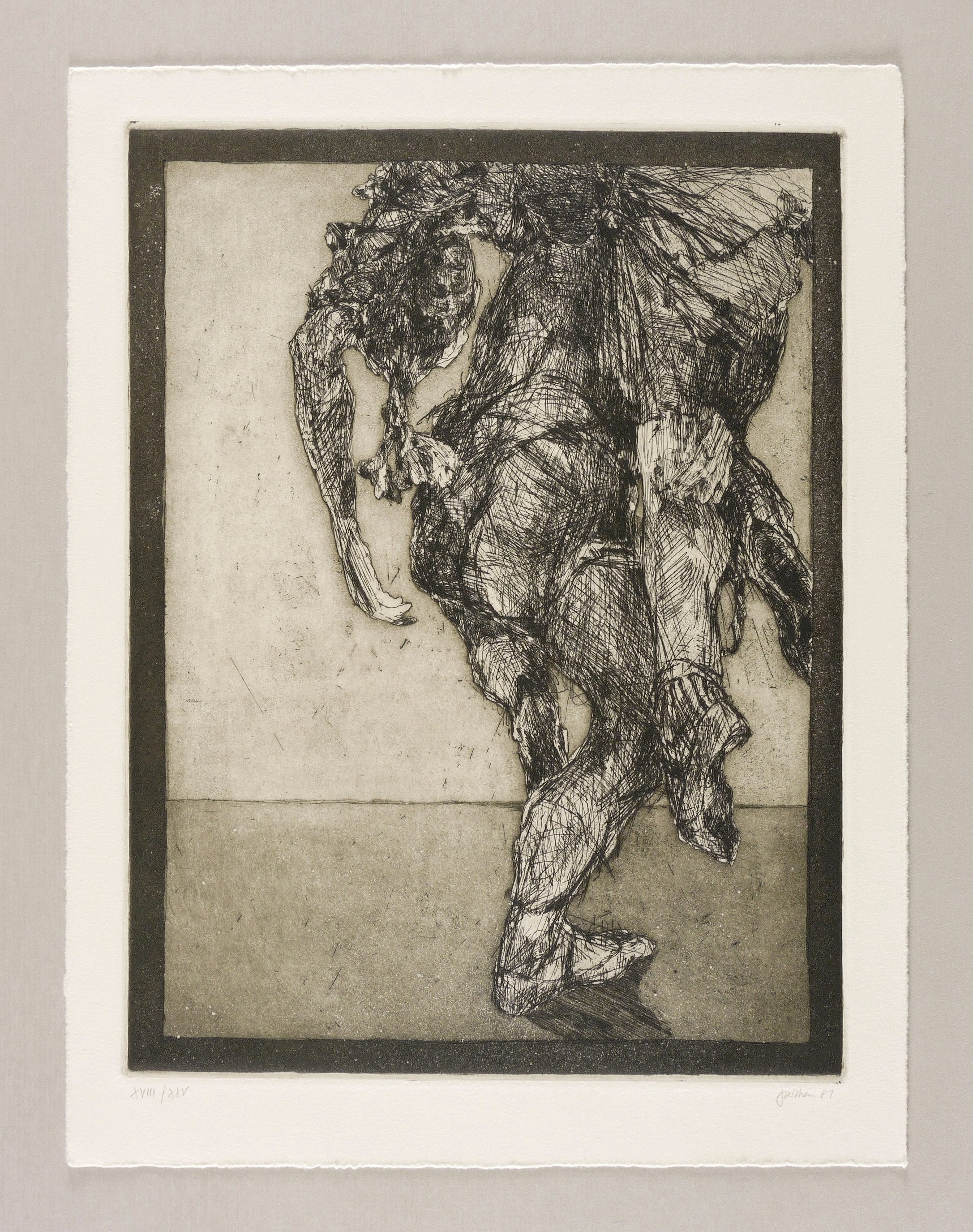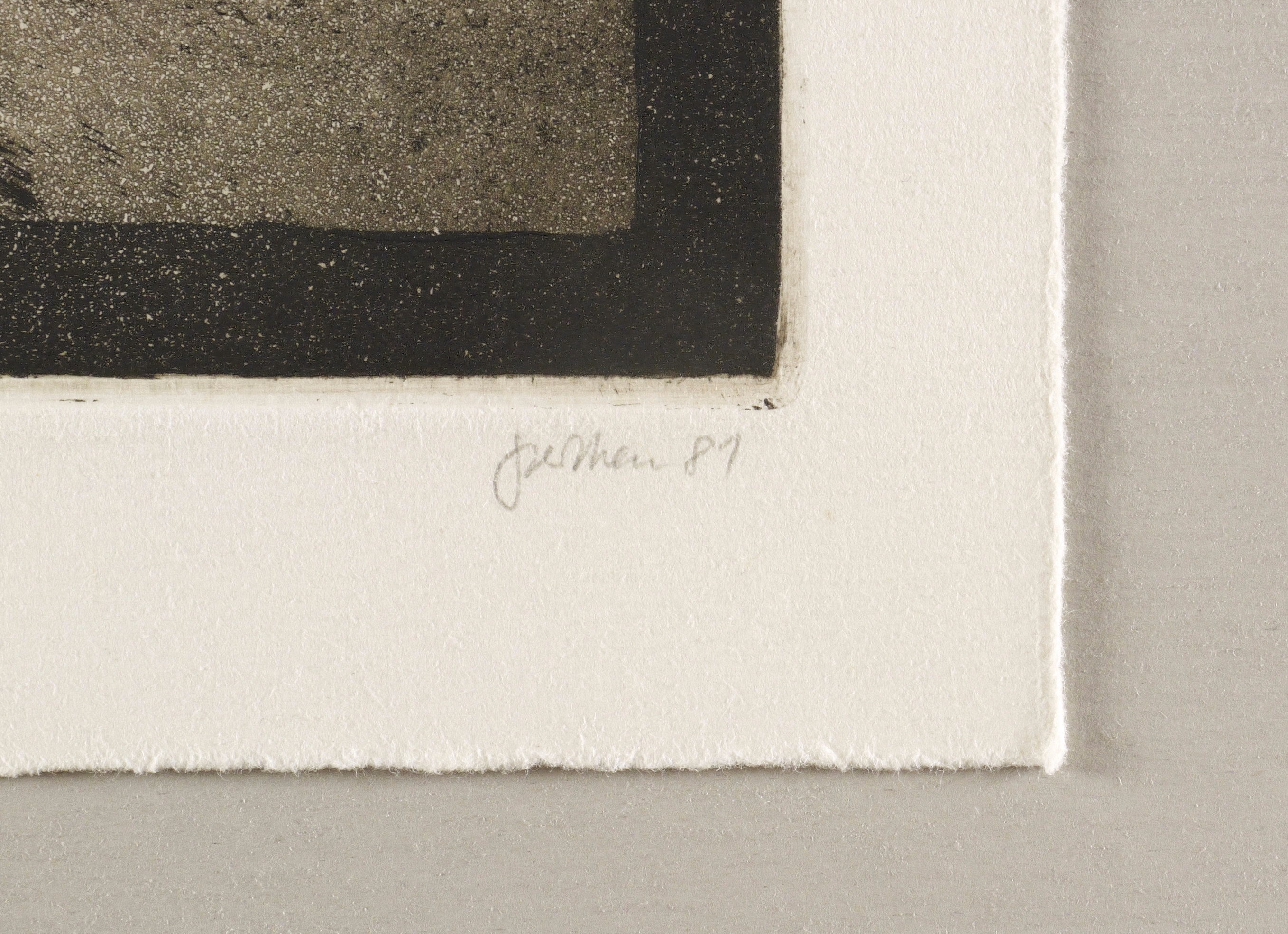 1981. Radierung / Aquatinta & Strichätzung, in Schwarz, auf weichem hellchamois Velin. – Originale Künstlergrafik, von Christine Perthen. – Auflage Exemplar Nr. XVIII/XXV. – 32,2 x 24,2 cm (Darstellung / Platte), 38 x 29 cm (Blatt).
