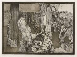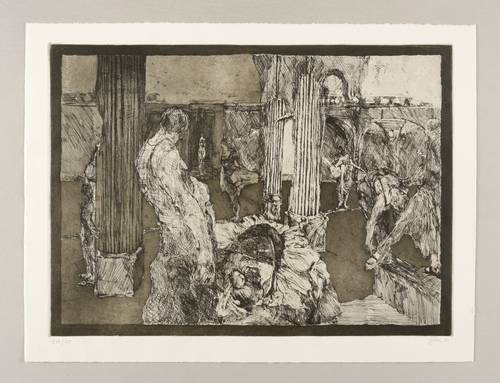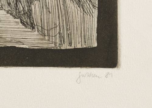 1981. Radierung / Aquatinta & Strichätzung, in Schwarz, auf weichem hellchamois Velin. – Originale Künstlergrafik, von Christine Perthen. – Auflage Exemplar Nr. XVIII/XXV. – 32,0 x 44,1 cm (Darstellung / Platte), 38 x 50 cm (Blatt).