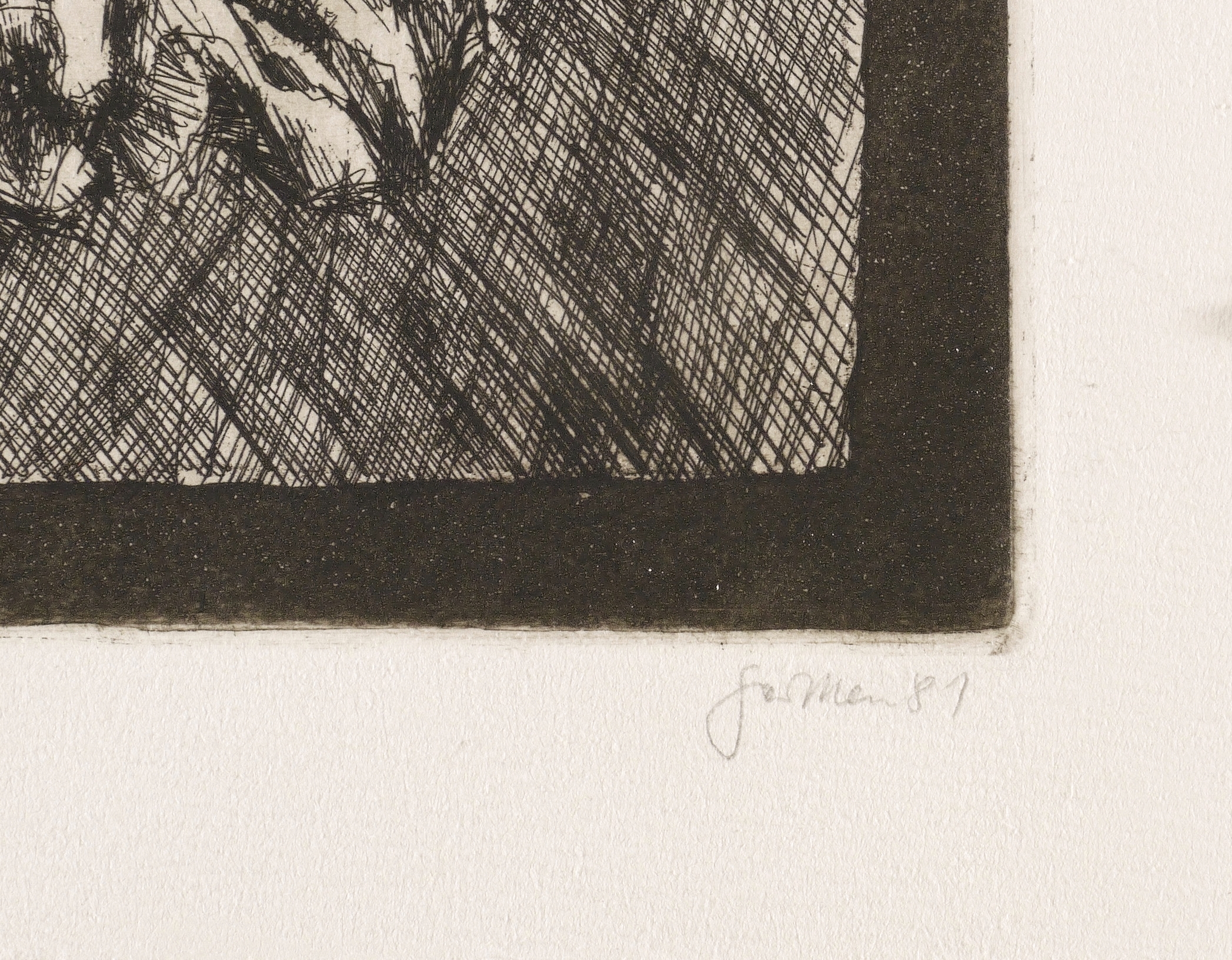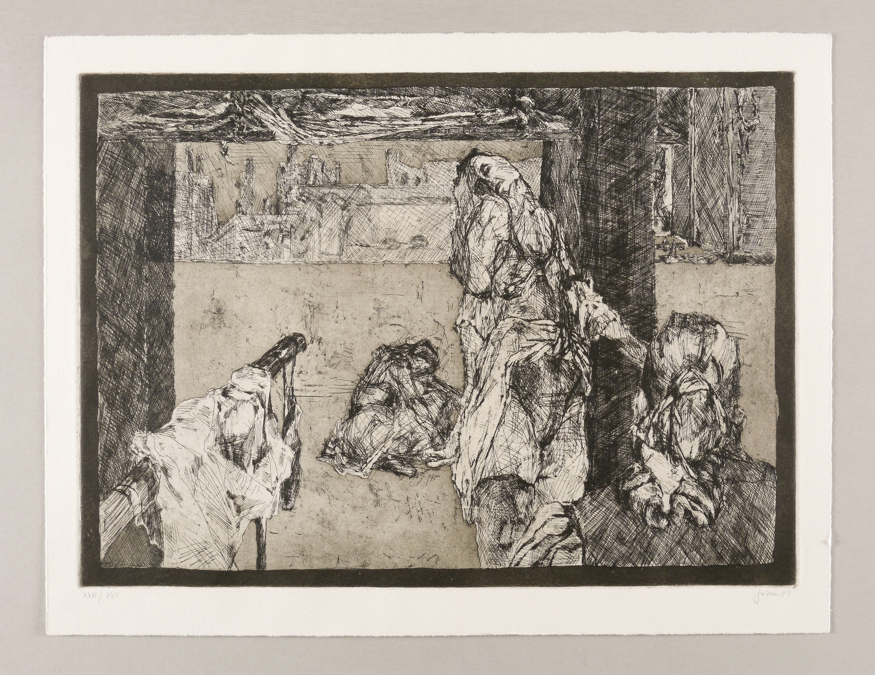 1981. Radierung / Aquatinta & Strichätzung, in Schwarz, auf weichem hellchamois Hahnemühle. – Originale Künstlergrafik, von Christine Perthen. – Auflage Exemplar Nr. XVIII/XXV. – 31,9 x 44,3 cm (Darstellung / Platte), 38 x 49 cm (Blatt).