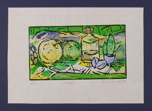 2008. Farbholzschnitt, auf Japanbütten. – Originale Künstlergrafik, von Uwe Peschel. – Auflage Exemplar Nr. 8/10. – 16,5 x 29,8 cm (Darstellung / Druckstock), 29,5 x 41,5 cm (Blatt).