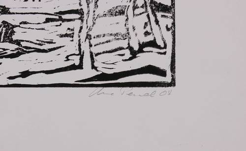 2008. Holzschnitt, in Schwarz, auf Velinkarton. – Originale Künstlergrafik, von Uwe Peschel. – Probedruck. – 16,6 x 29,6 cm (Darstellung / Druckstock), 30 x 42 cm (Blatt).