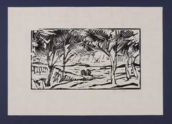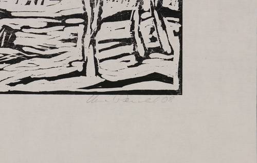 2008. Holzschnitt, auf Büttenpapier. – Originale Künstlergrafik, von Uwe Peschel. – Probedruck. – 16,6 x 29,6 cm (Darstellung / Druckstock), 30 x 42 cm (Blatt).