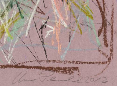 2012. Zeichnung / Pastellkreide, auf hellviolettem Büttenpapier. – Von Uwe Peschel. – 43,0 x 54,0 cm (Darstellung / Blatt).
