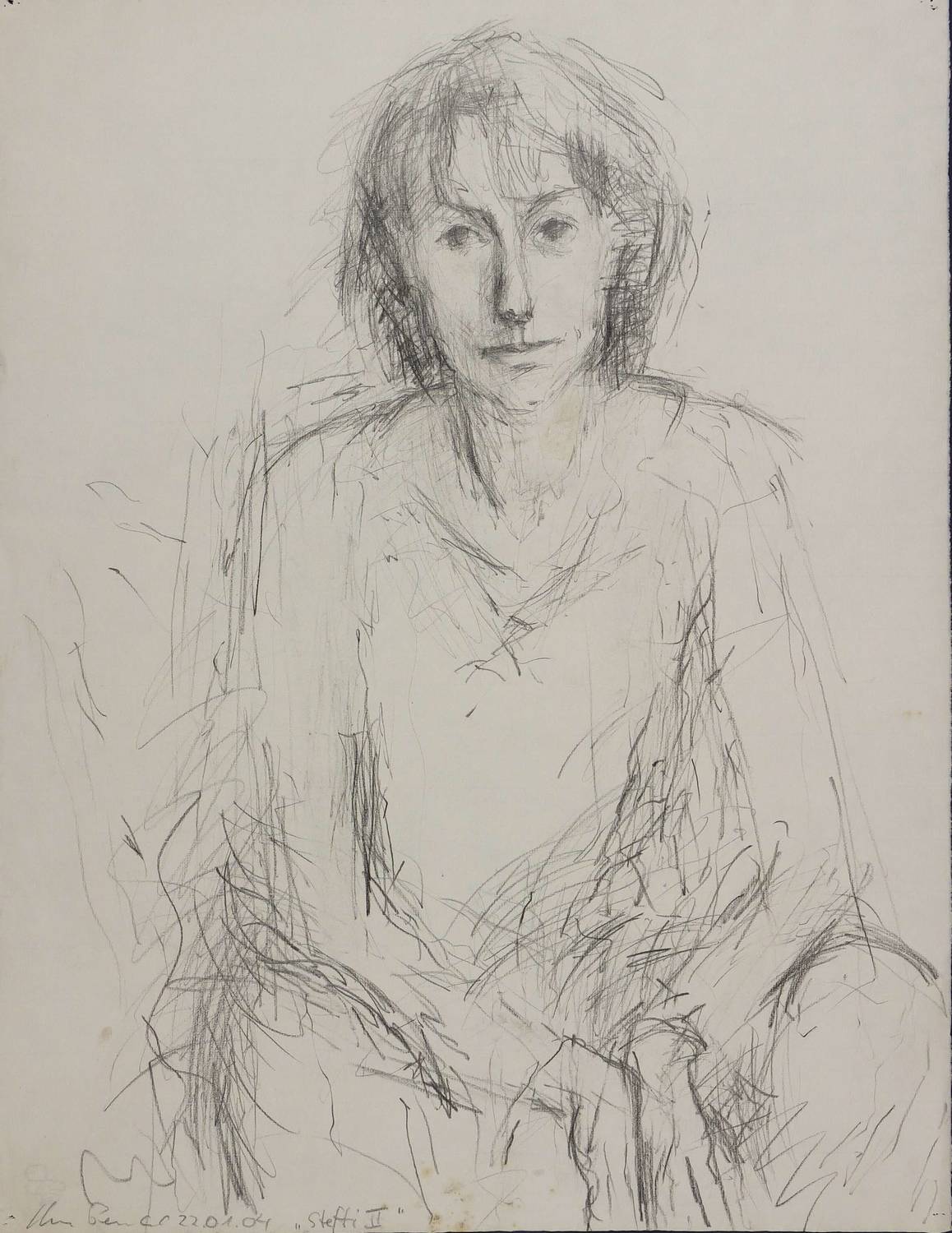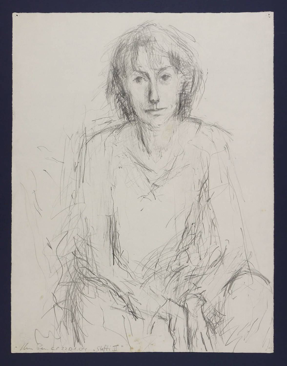 Links unten signiert, datiert ″22.01.04″ und betitelt sowie Wasserzeichen der Hahnemühle. – Blattrand leicht knickspurig. Insgesamt etwas angeschmutzt. Reißzwecklöchlein. Insgesamt noch gut erhalten.