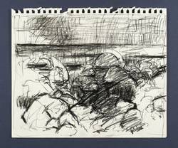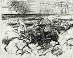 2014. Zeichnung / Kohlezeichnung, auf weißem Papier. – Originale Künstlergrafik, von Uwe Peschel. – Unikat. – 29,5 x 35,5 cm (Darstellung / Blatt).