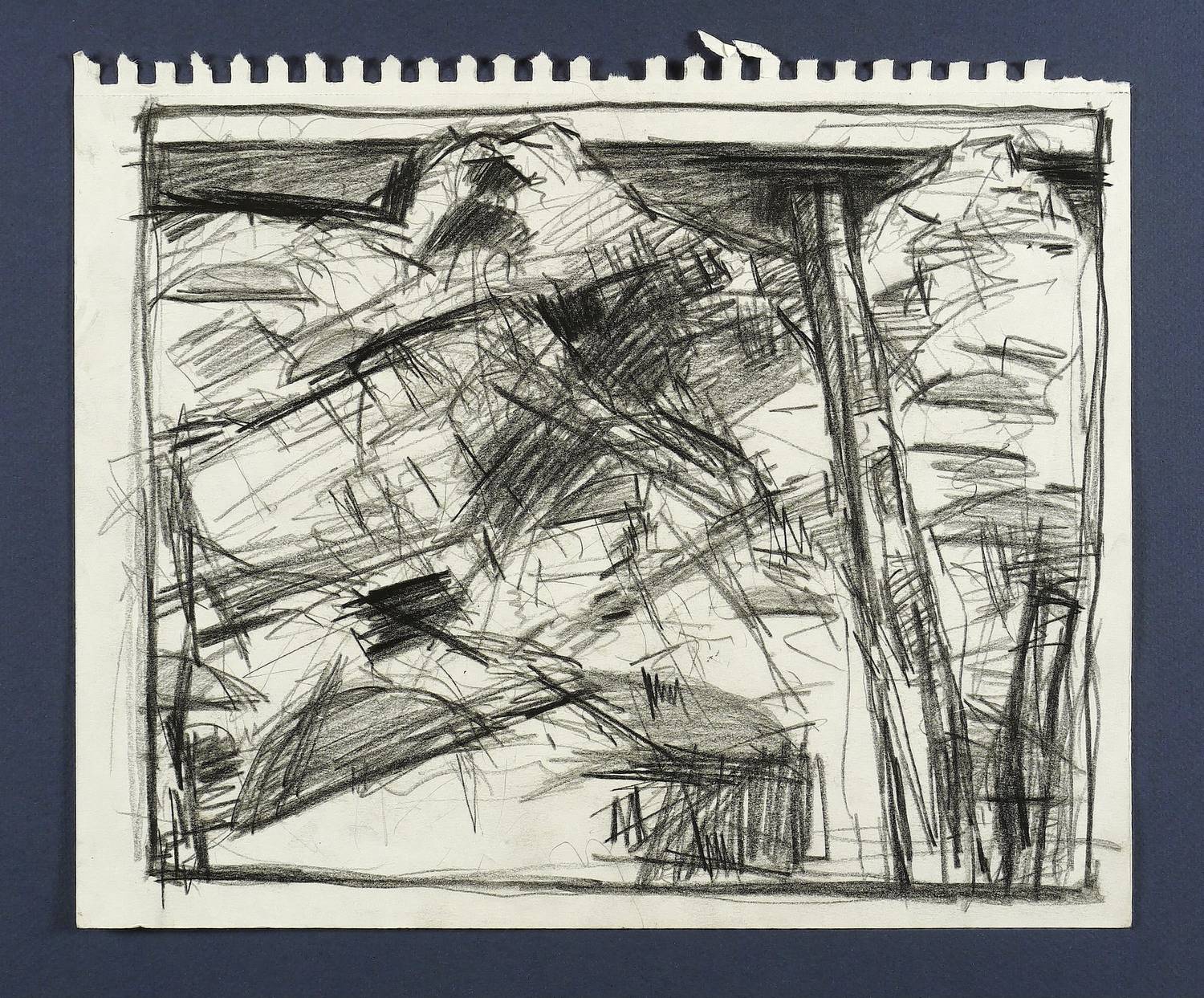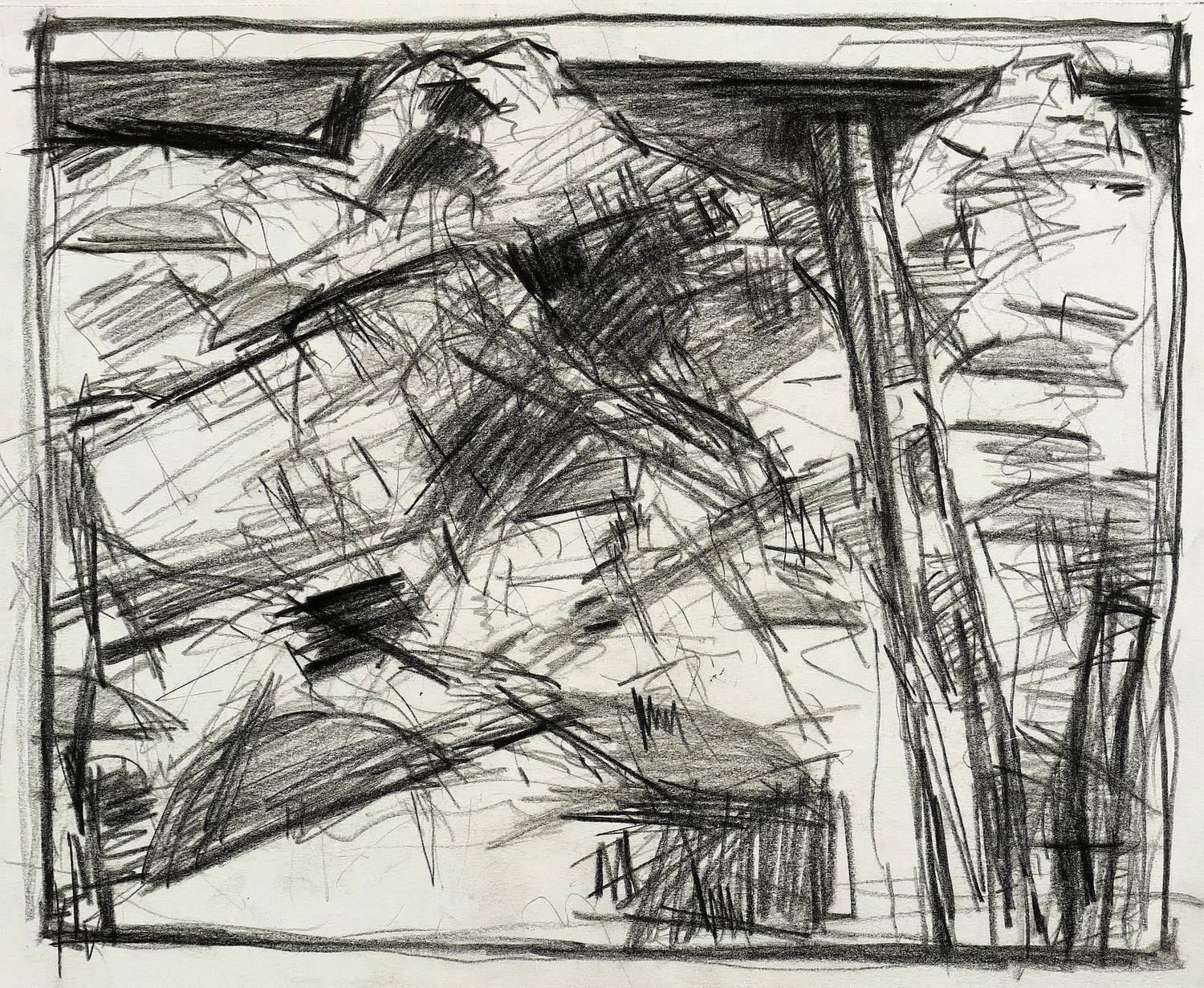 2014. Zeichnung / Fettkreide, in Schwarz, auf Papier. – Originale Künstlergrafik, von Uwe Peschel. – Unikat. – 28,0 x 35,5 cm (Darstellung / Blatt).