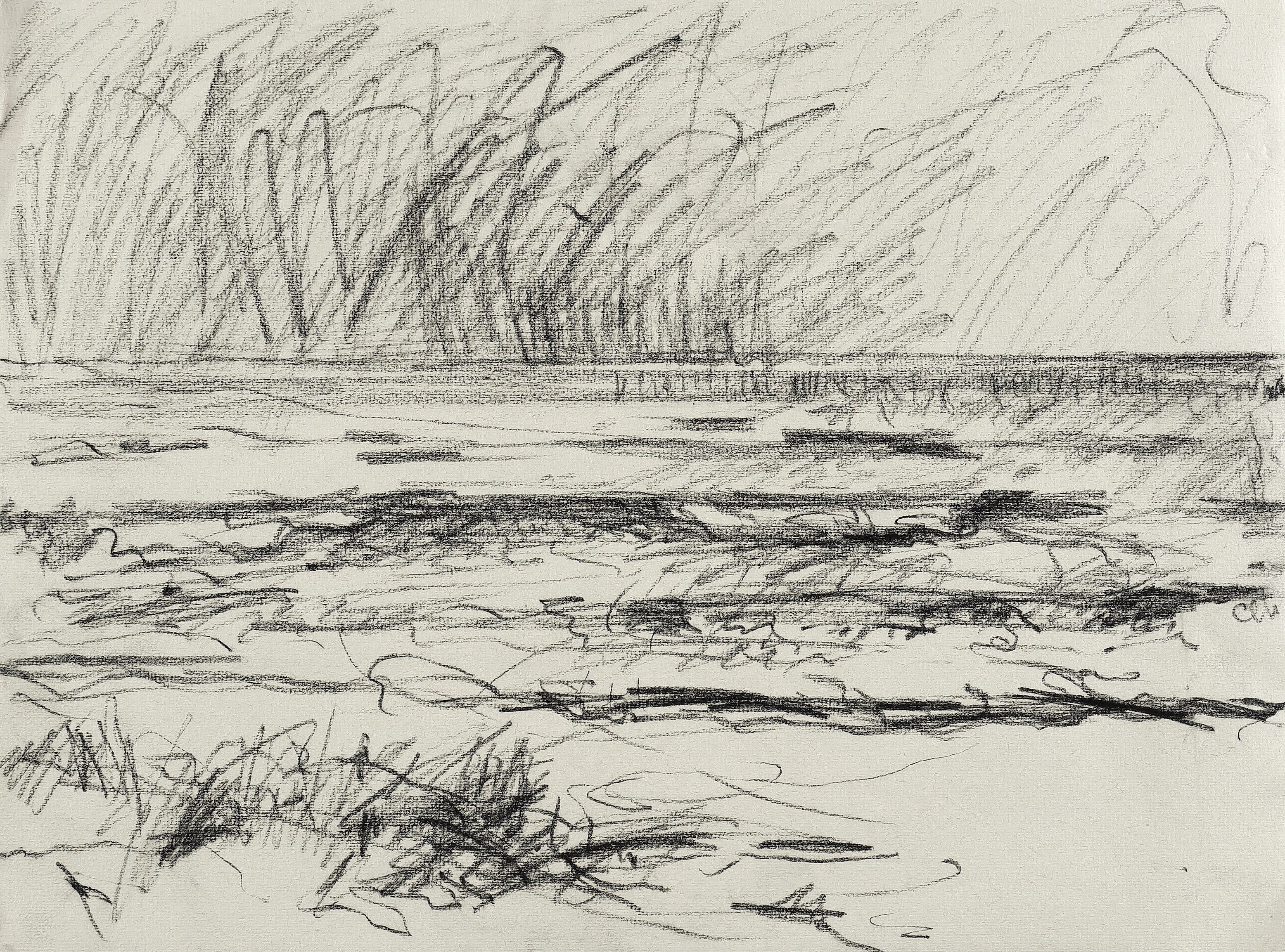2014. Zeichnung / Fettkreide, auf Maschinenbütten. – Originale Künstlergrafik, von Uwe Peschel. – Unikat. – 30,5 x 40,8 cm (Darstellung / Blatt).