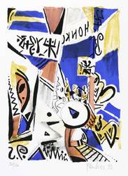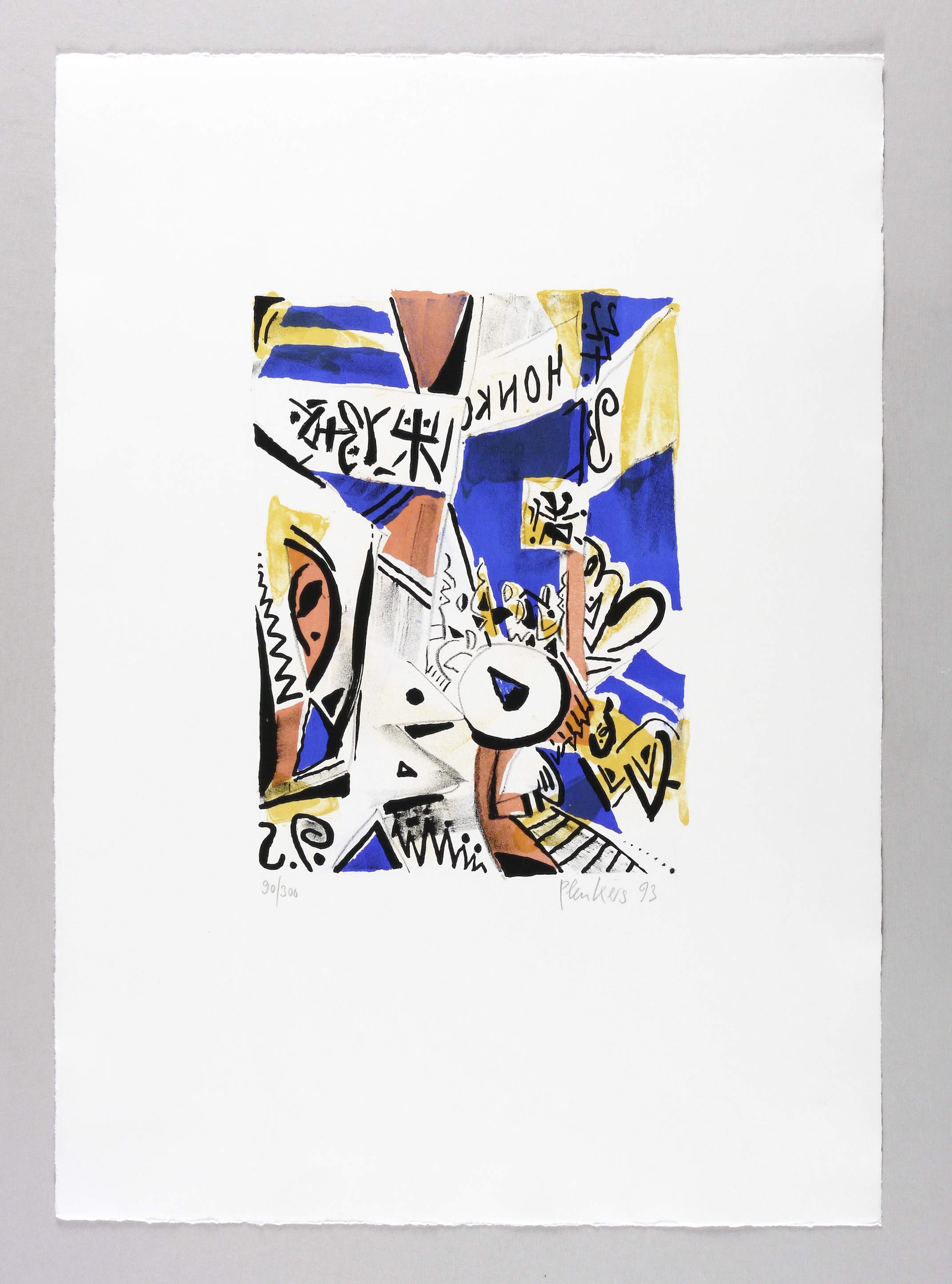 1993. Farblithografie / Kreide- & Pinsellithografie, in 4 Farben, auf weißem Büttenkarton. – Originale Künstlergrafik, von Stefan Plenkers. – Auflage Exemplar Nr. 90/300. – 29,7 x 21,9 cm (Darstellung), 60 x 43 cm (Blatt).