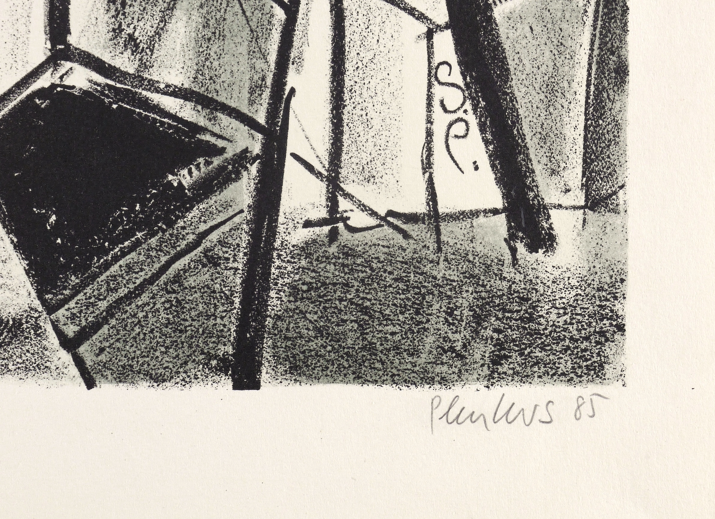 Rechts unten in Bleistift signiert und datiert: ″Plenkers 85″. Links Auflagenbezeichnung: ″8/25″. Im Stein direkt darüber Datum: ″13.VI.85″. Rechts unten Signatur: ″S.P.″ – Provenienz: Sammlung Gerlint und Gert Söder, Dresden. – Sehr guter Zustand.