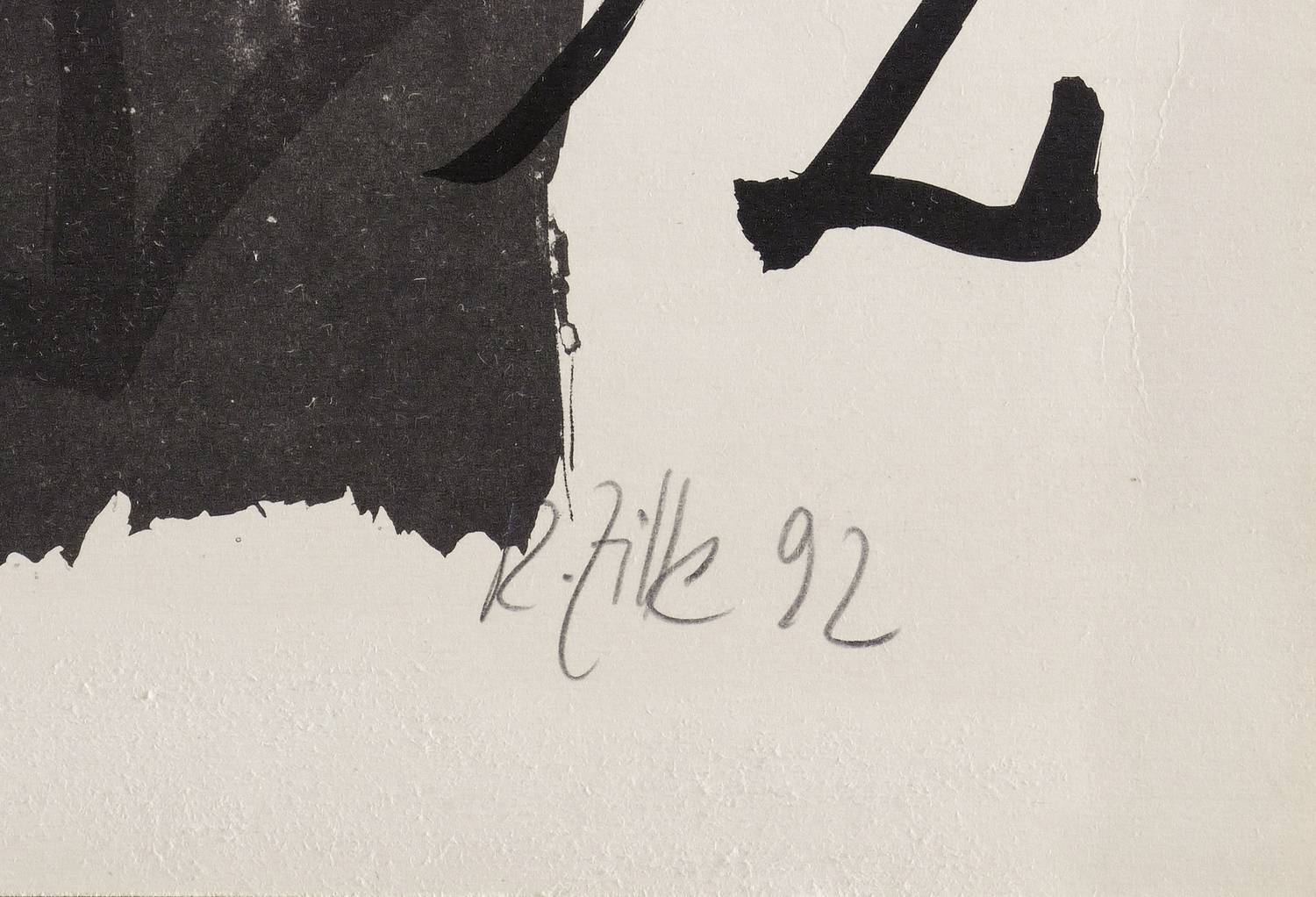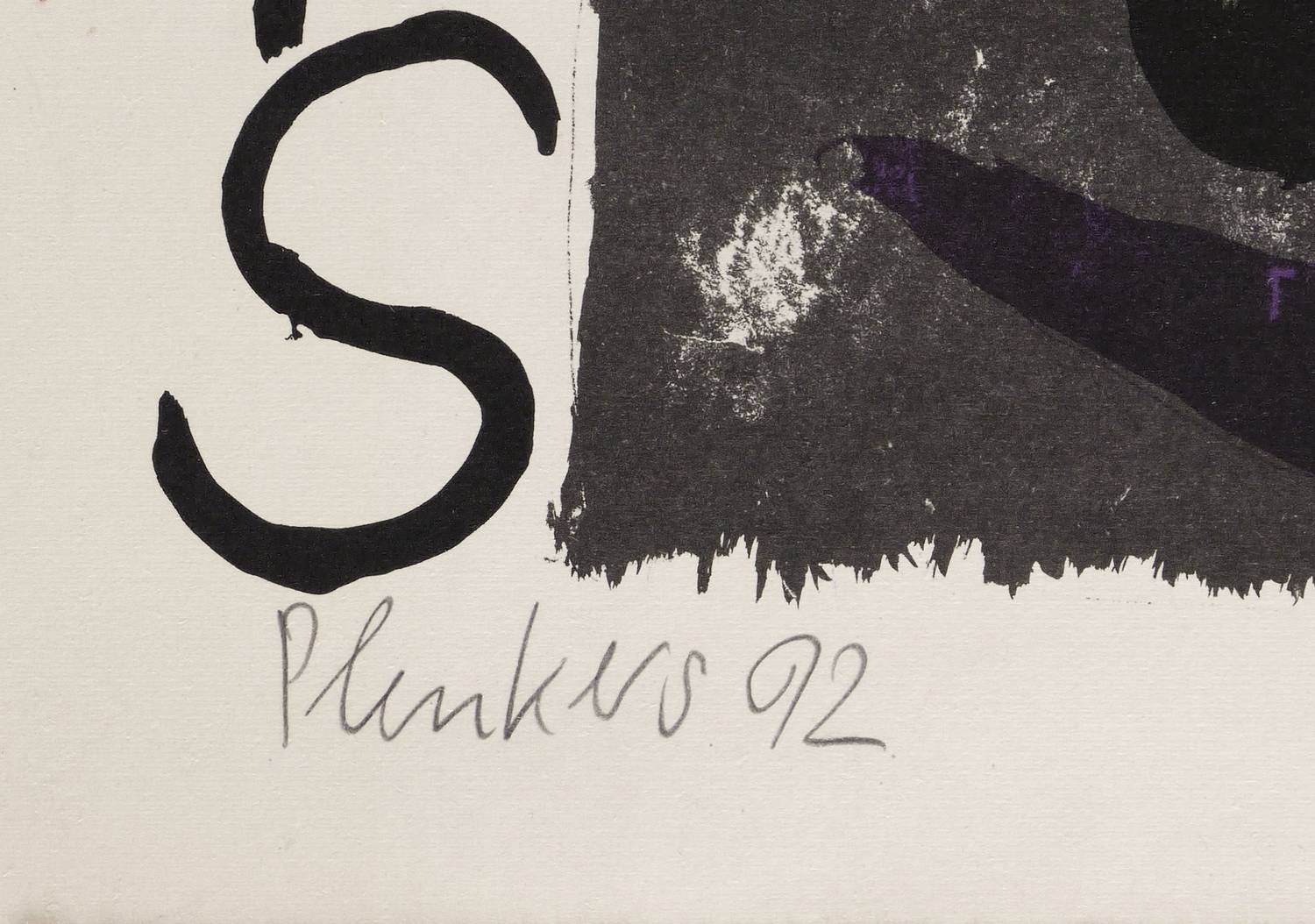 Links und rechts unten in Bleistift signiert und datiert: ″Plenkers 92 // R. Zille 92″. Mittig Auflagenbezeichnung: ″6/12″. Trockenstempel der Dresdner Druckwerkstadt. Im Stein Inschrift: ″plenkers / zille 92 / hüls / HÜLS-AG Ausstellung Nov. 92″. – Originalgrafisches Plakat zur Ausstellung von Stefan Plenkers, Veit Hofmann und Rainer Zille in der Hüls AG in Marl im November 1992. – Provenienz: Sammlung Gerlint und Gert Söder, Dresden. – Sehr guter Zustand.