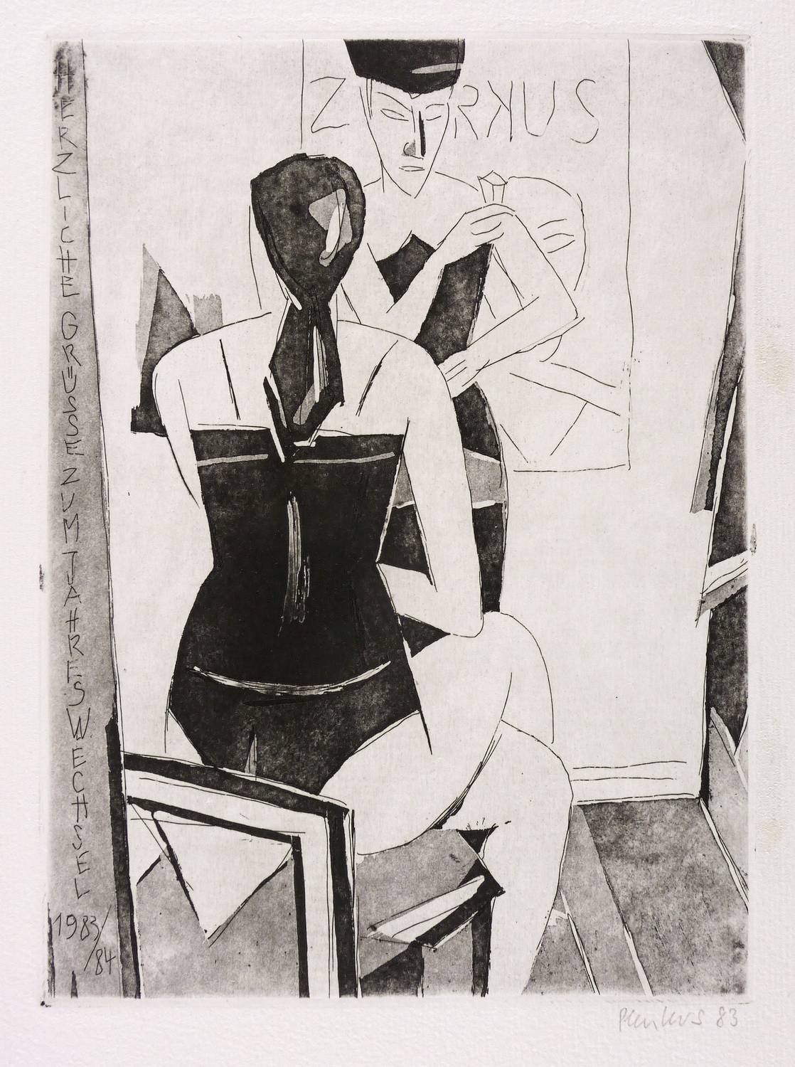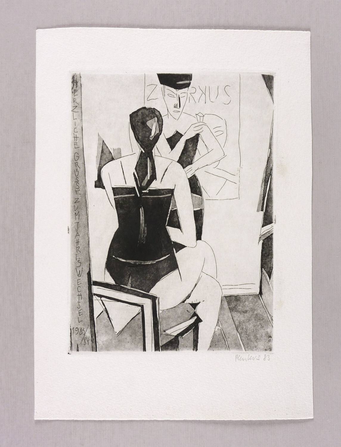 Rechts unten in Bleistift signiert und datiert: ″Plenkers 83″. In der Platte Inschrift: ″ZIRKUS // (...)″. – Sehr guter Zustand.