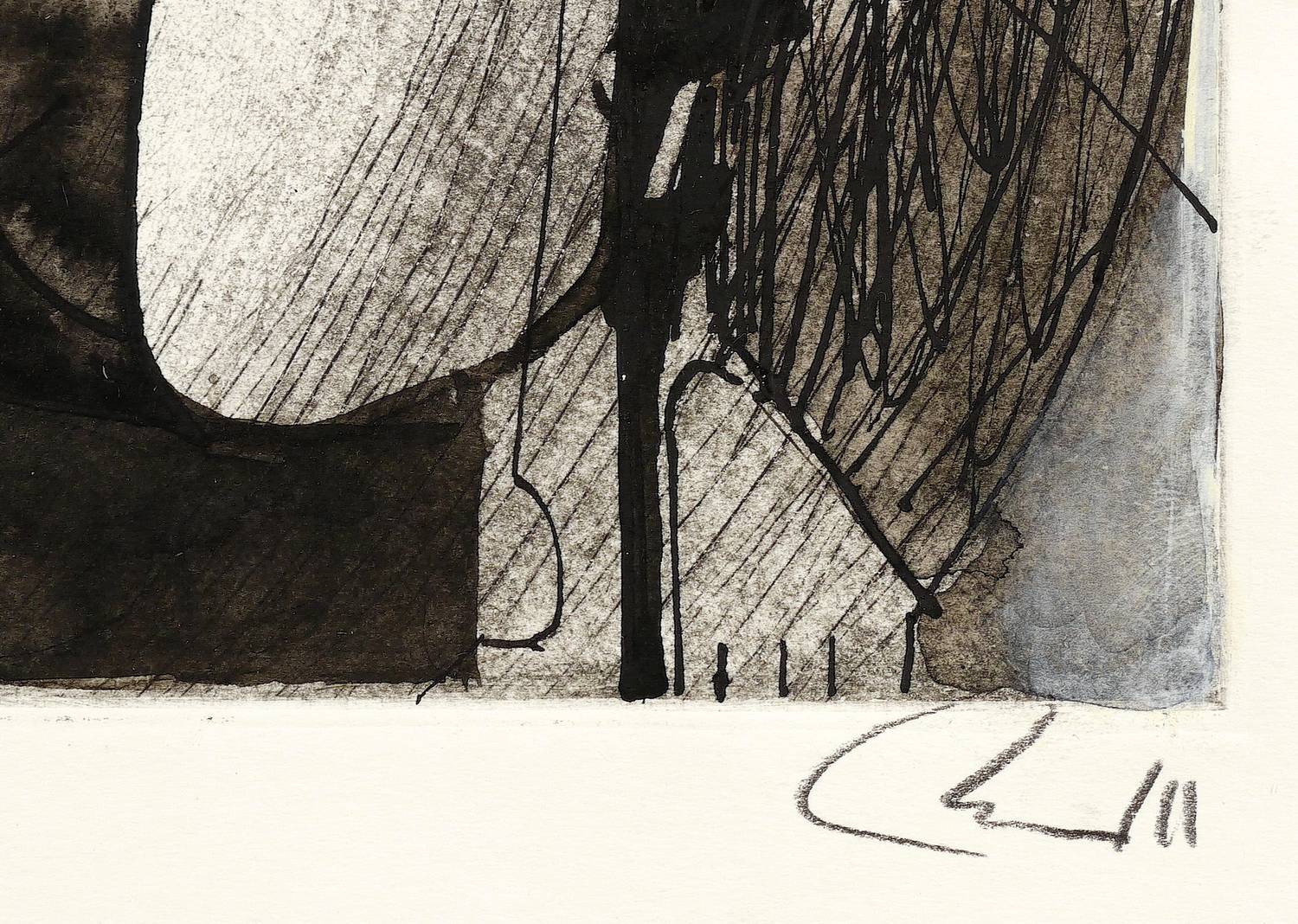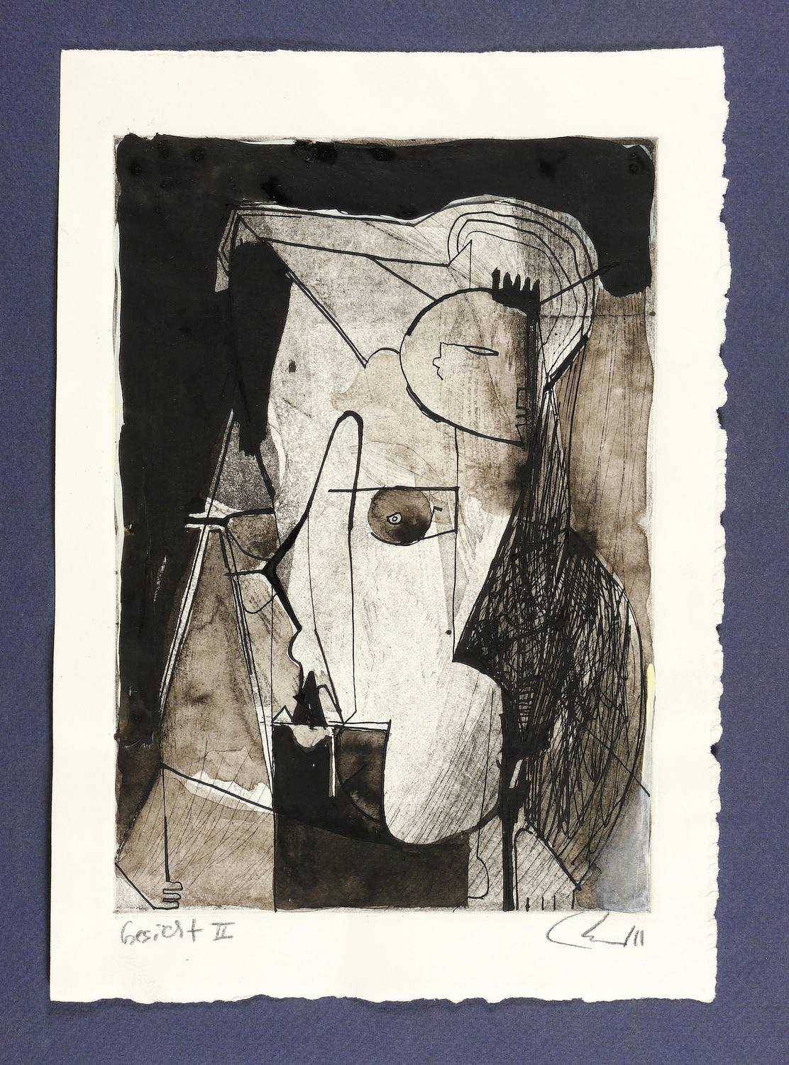 2011. Mischtechnik / Tusche & Gouache, über Radierung, auf Büttenpapier. – Originale Künstlergrafik, von Tanja Pohl. – Unikat. – 20,0 x 14,0 cm (Darstellung / Platte), 25 x 18 cm (Blatt).