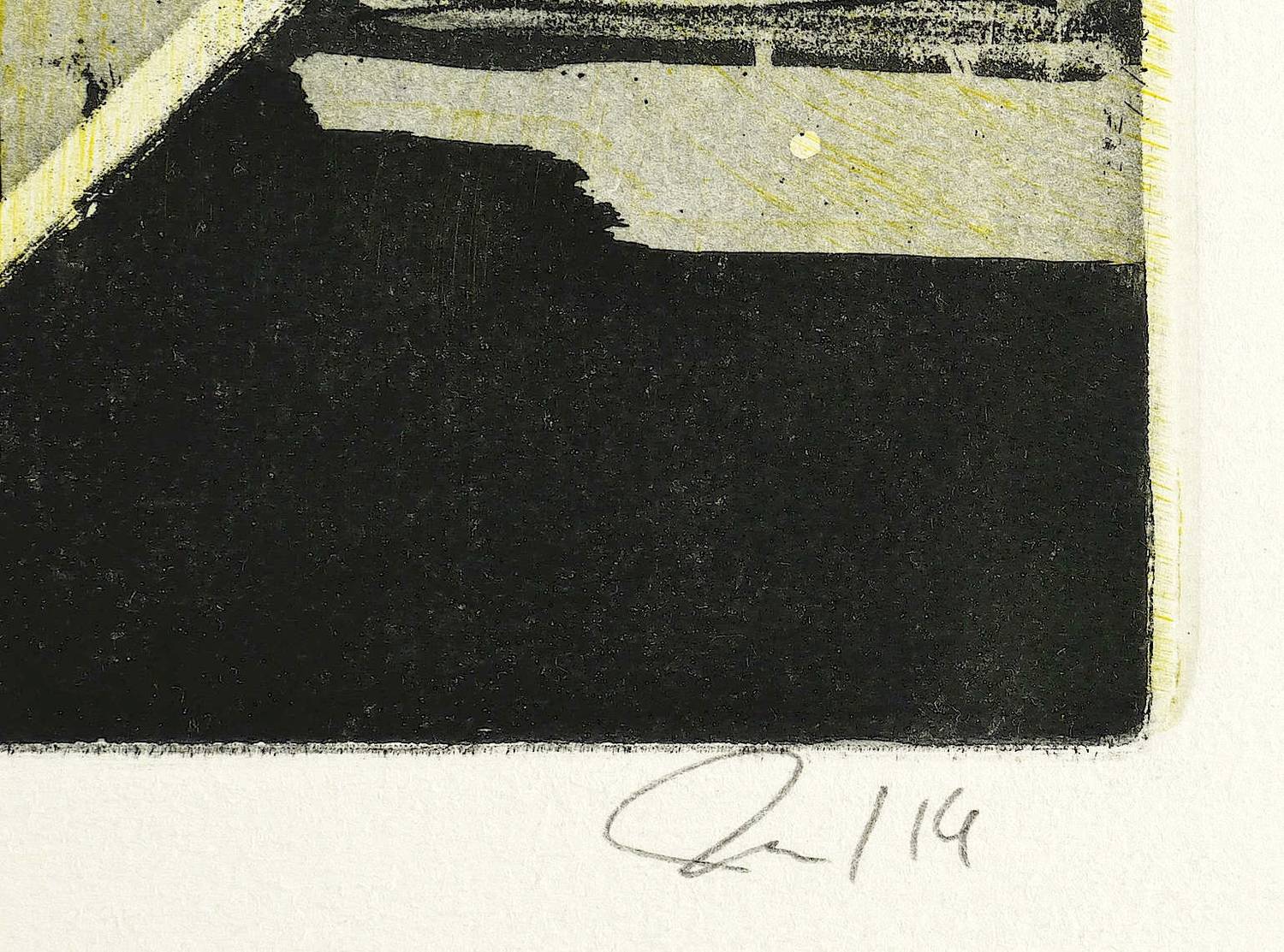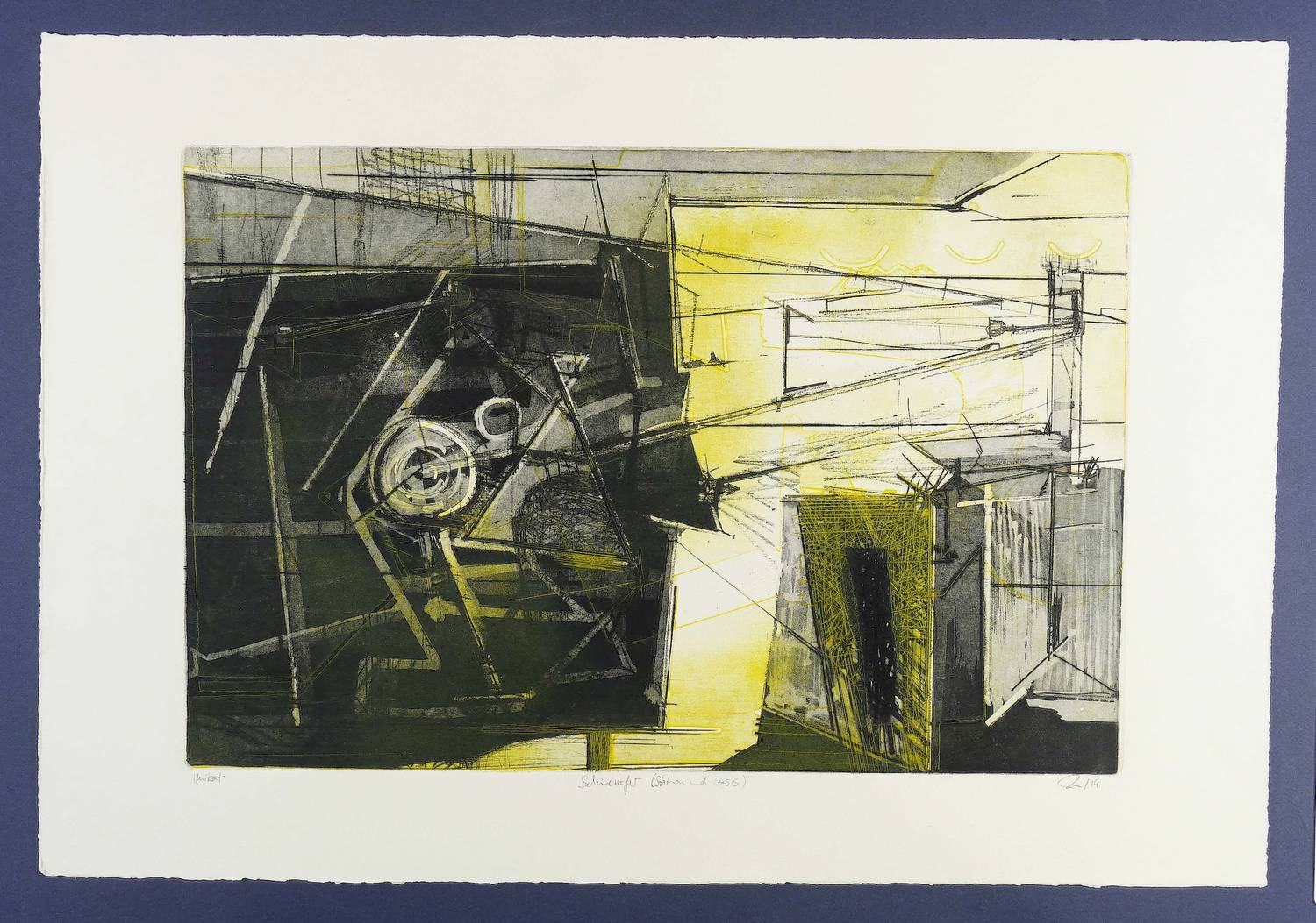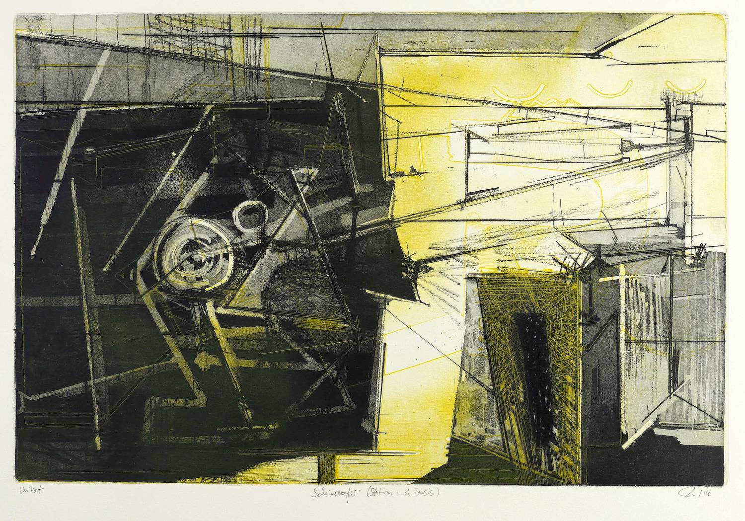 2014. Farbradierung / Strichätzung, Kaltnadel, Aquatinta, Vernis mou & Reservage, von 2 Platten, in Gelb & Schwarz, auf Hahnemühle-Bütten. – Originale Künstlergrafik, von Tanja Pohl. – Unikat. – 40,0 x 59,5 cm (Darstellung / Platte), 54 x 79 cm (Blatt).