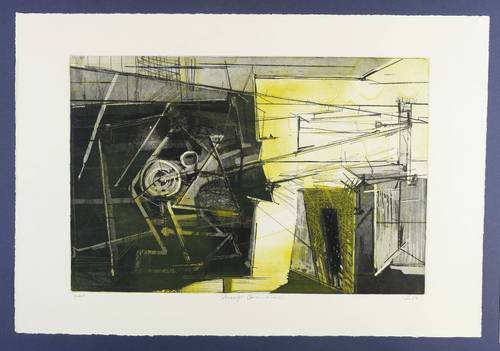 Rechts unten in Bleistift signiert und datiert. Links Auflagenbezeichnung, mittig Titel. – Unikates Blatt aus der Serie ″Station und Basis″. – Ohne Mängel. Sehr guter Zustand.
