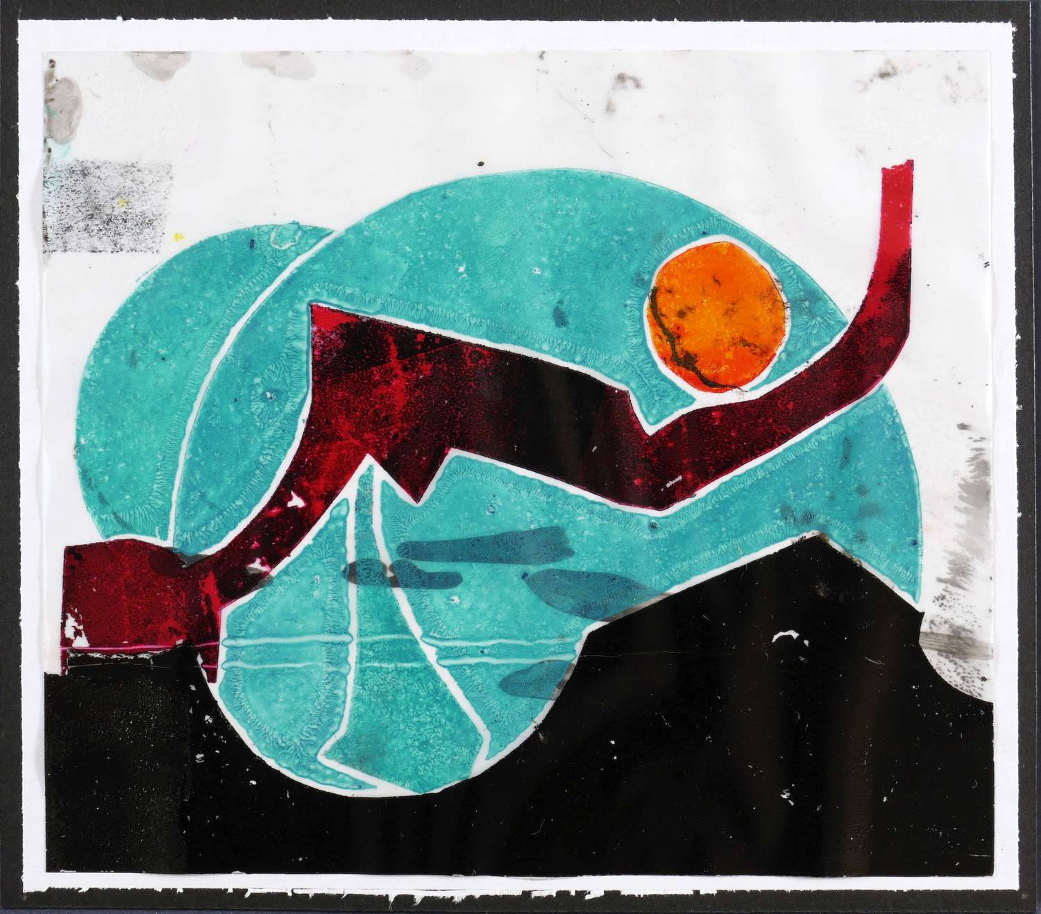 2016. Farbschablonendruck / Pochoir, mit Teichfolie, in 5 Farben, auf Transparentpapier. – Von Tanja Pohl. – Unikat. – 13,5 x 15,5 cm (Darstellung / Blatt), 15 x 17 cm (Trägerkarton).