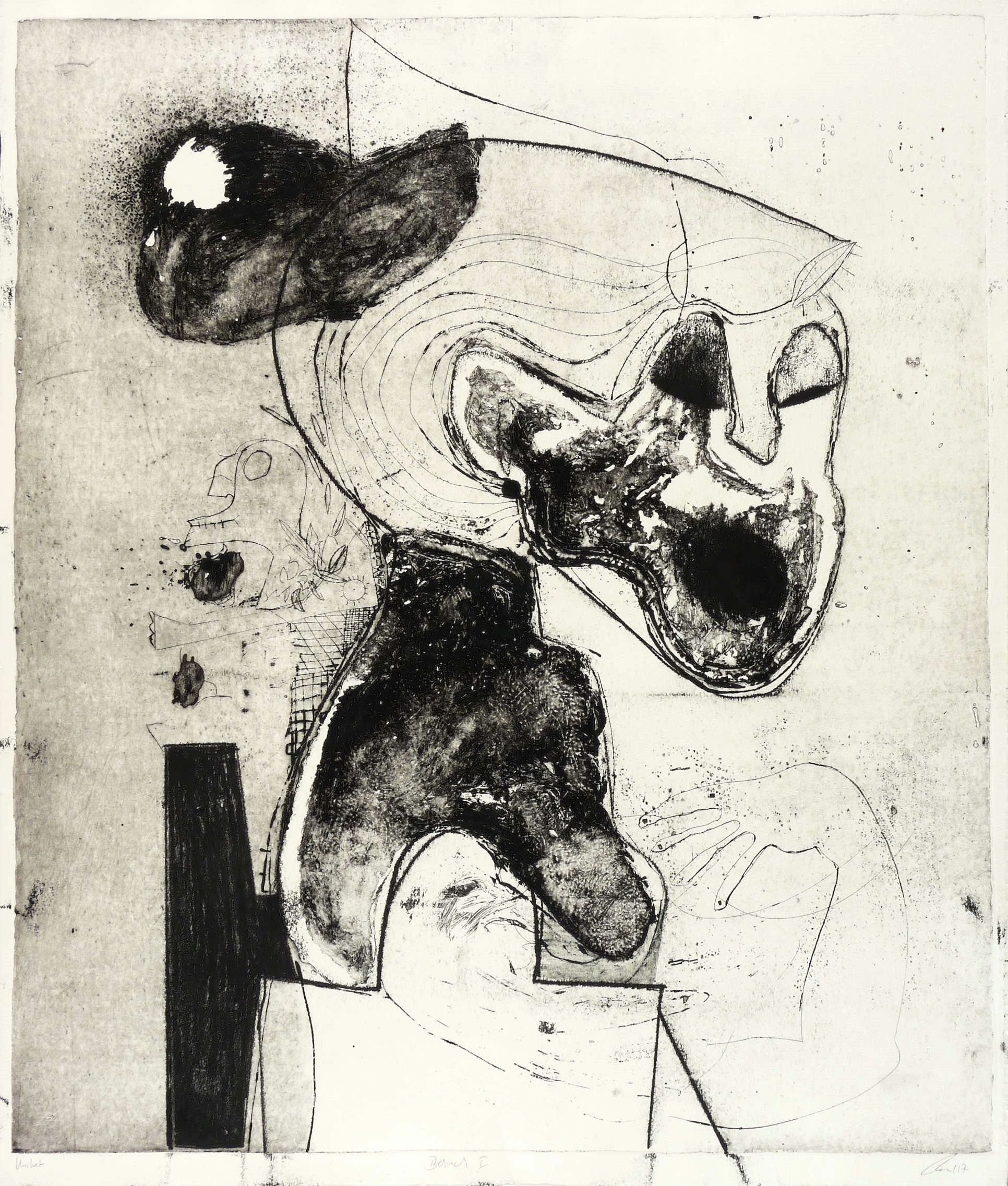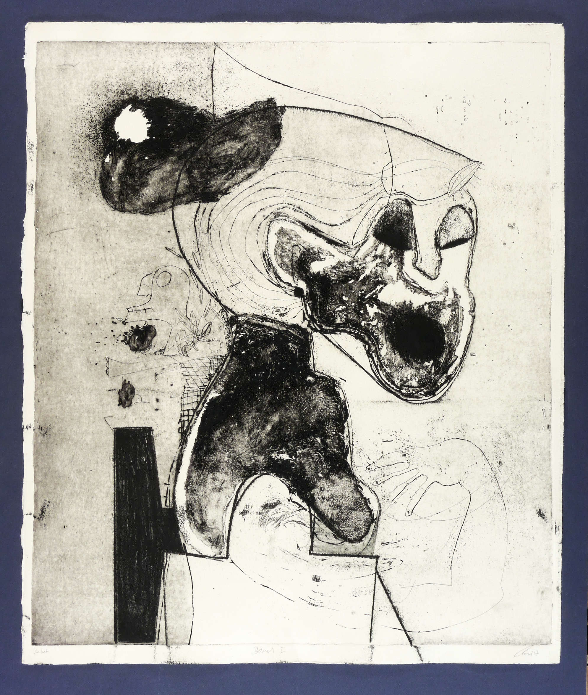 2017. Radierung / Strichätzung, Reservage & Kaltnadel, mit Prägedruck, mit Monotypie überarbeitet, auf Büttenkarton. – Originale Künstlergrafik, von Tanja Pohl. – Unikat. – 69,0 x 59,5 cm (Darstellung / Platte), 74 x 62 cm (Blatt).