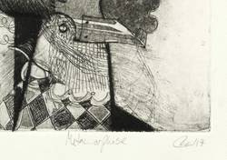 2017. Radierung / Strichätzung, Aquatinta & Reservage, in Schwarz, auf Büttenkarton. – Originale Künstlergrafik, von Tanja Pohl. – Künstlerexemplar (e.a.). – 19,8 x 14,8 cm (Darstellung / Platte), 24 x 19 cm (Blatt).