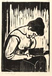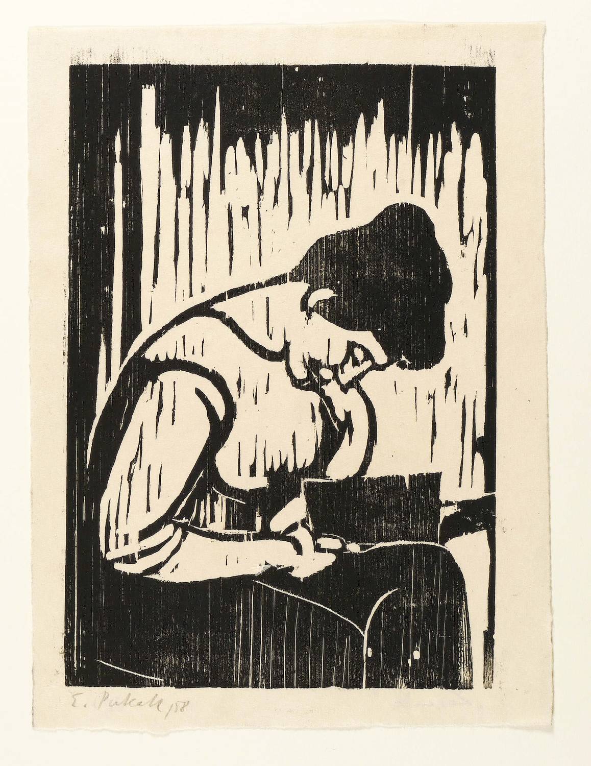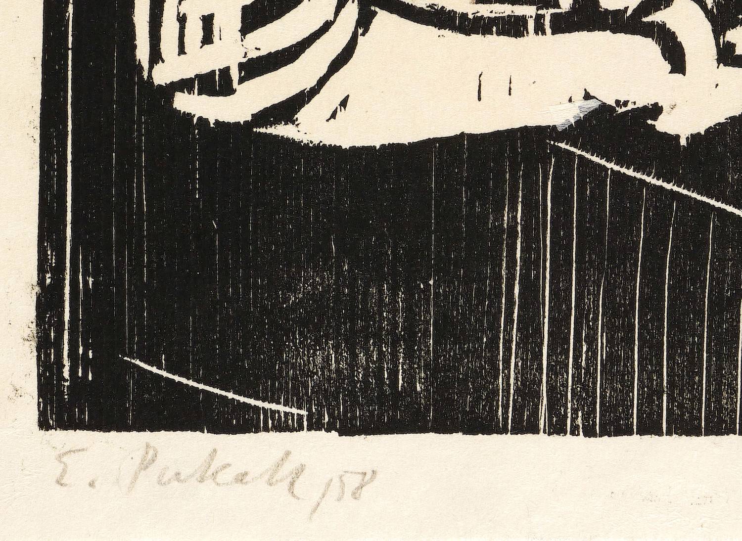 1958. Holzschnitt, in Schwarz, auf rauem weißlichem Japan. – Originale Künstlergrafik, von Egon Pukall. – 27,6 x 19,0 cm (Darstellung / Druckstock), 31 x 23 cm (Blatt).