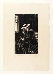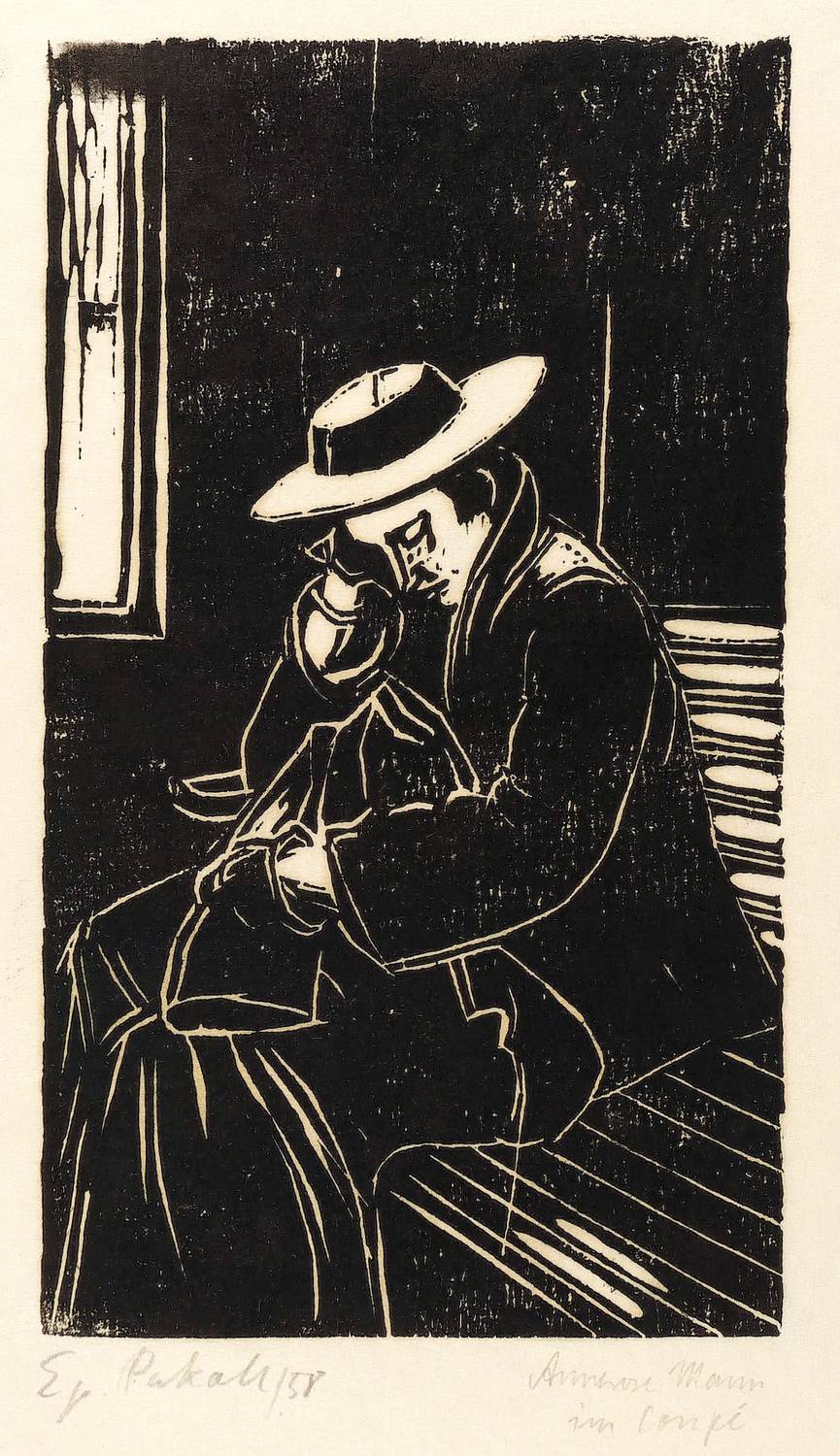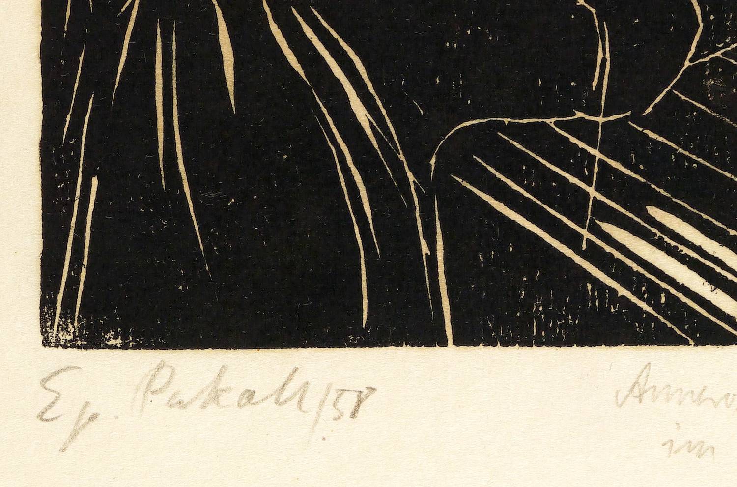 1958. Holzschnitt, in Schwarz, auf rauem weißlichem Japan. – Originale Künstlergrafik, von Egon Pukall. – 24,8 x 14,1 cm (Darstellung / Druckstock), 42 x 29 cm (Blatt).