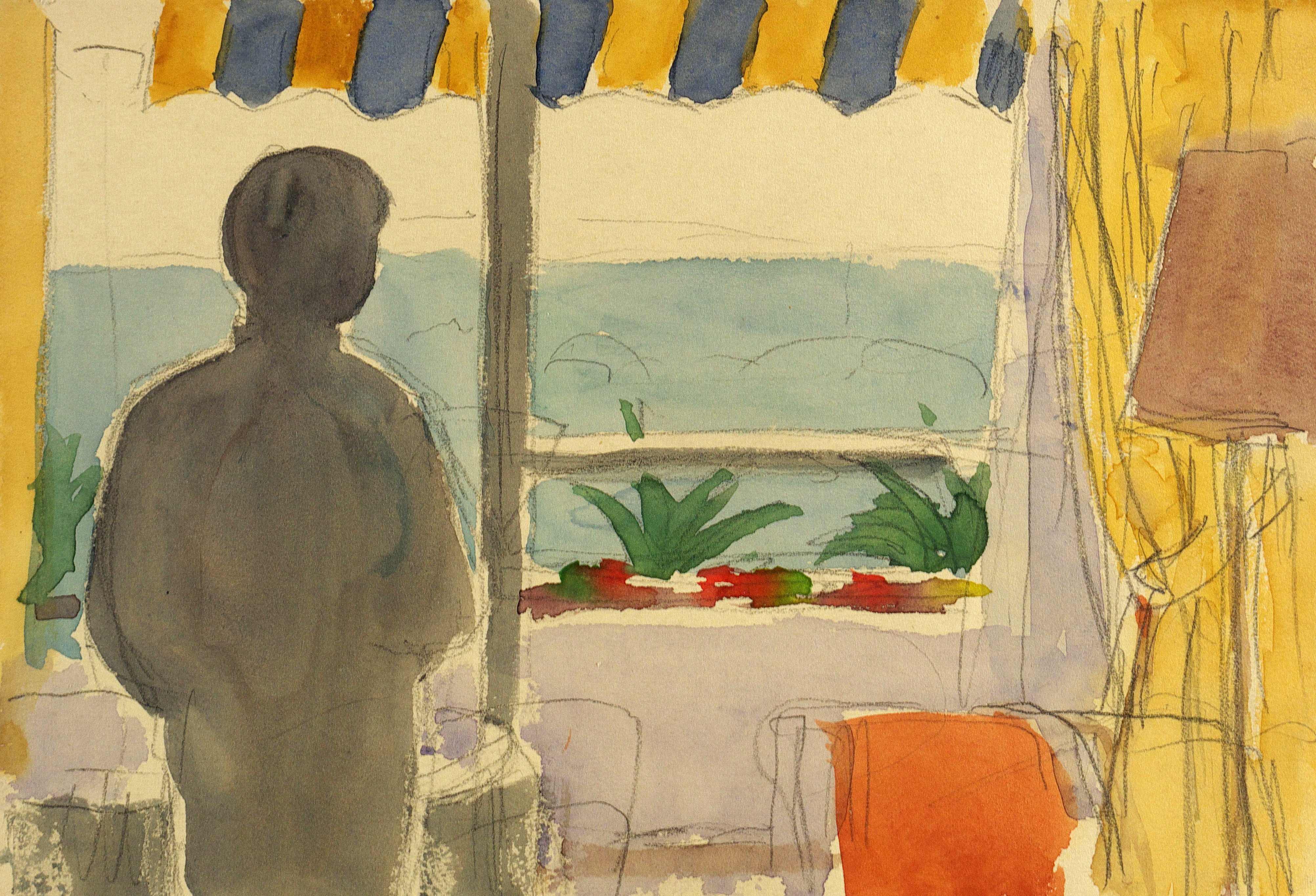 1988/1989. Aquarell, auf leichtem hellgelbem Velin. – Originale Künstlergrafik, von Egon Pukall. – Unikat. – 14,3 x 20,1 cm (Darstellung / Blatt).