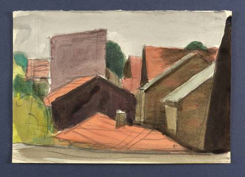 1980-1985. Aquarell, auf Papier. – Originale Künstlergrafik, von Egon Pukall. – Unikat. – 14,2 x 20,4 cm (Darstellung / Blatt).