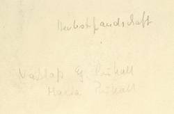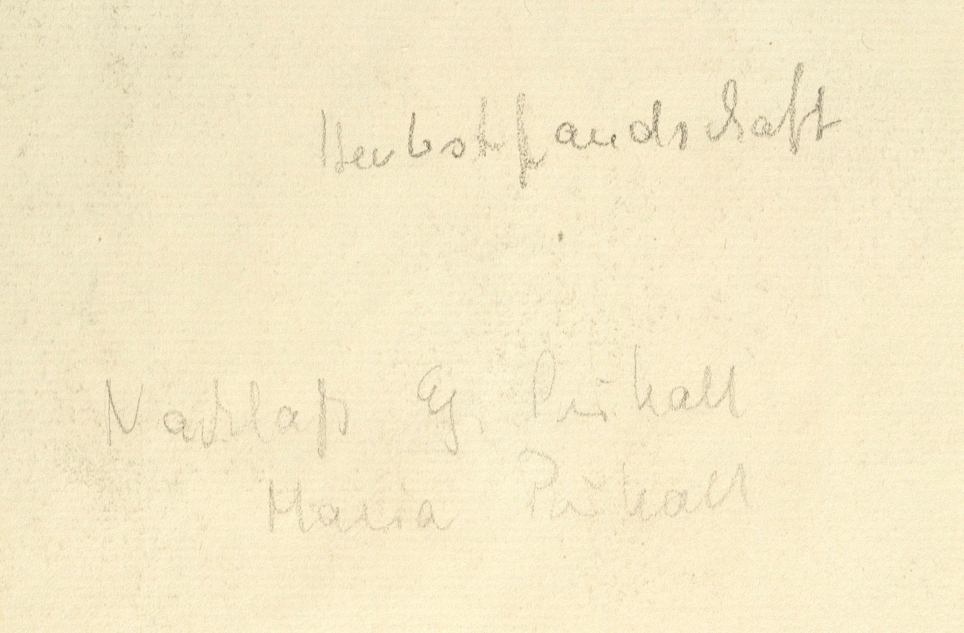 Verso in Bleistift betitelt und bezeichnet: ″Herbstlandschaft / Nachlaß E. Pukall / Maria Pukall″. Dazu Nachlass-Stempel. – Sehr guter Erhaltungszustand.