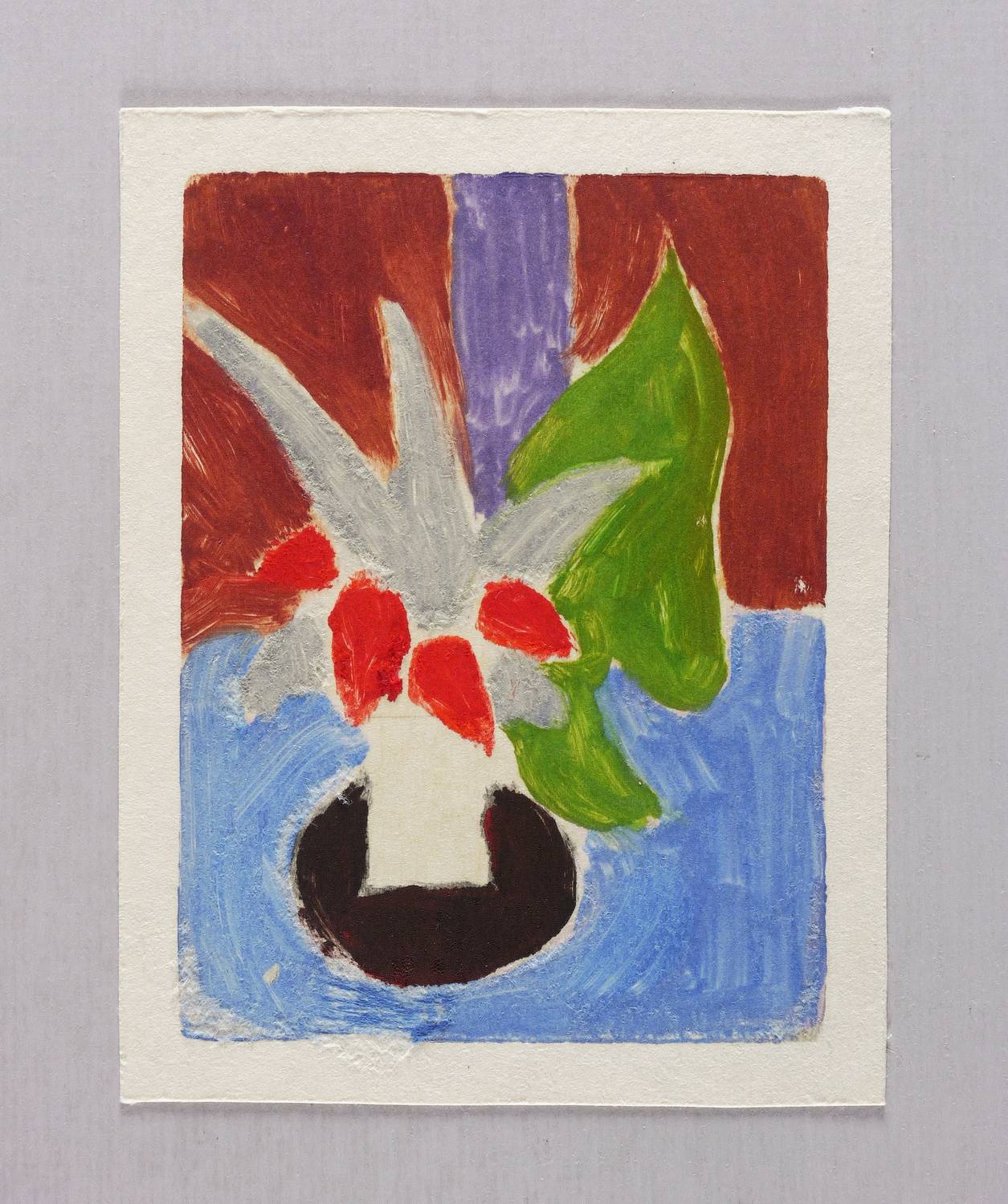 1987/1988. Farbmonotypie, in 8 Farben, auf hellchamois Velinkarton. – Originale Künstlergrafik, von Egon Pukall. – Unikat. – 14,1 x 10,7 cm (Darstellung / Druckbild), 16 x 13 cm (Blatt).