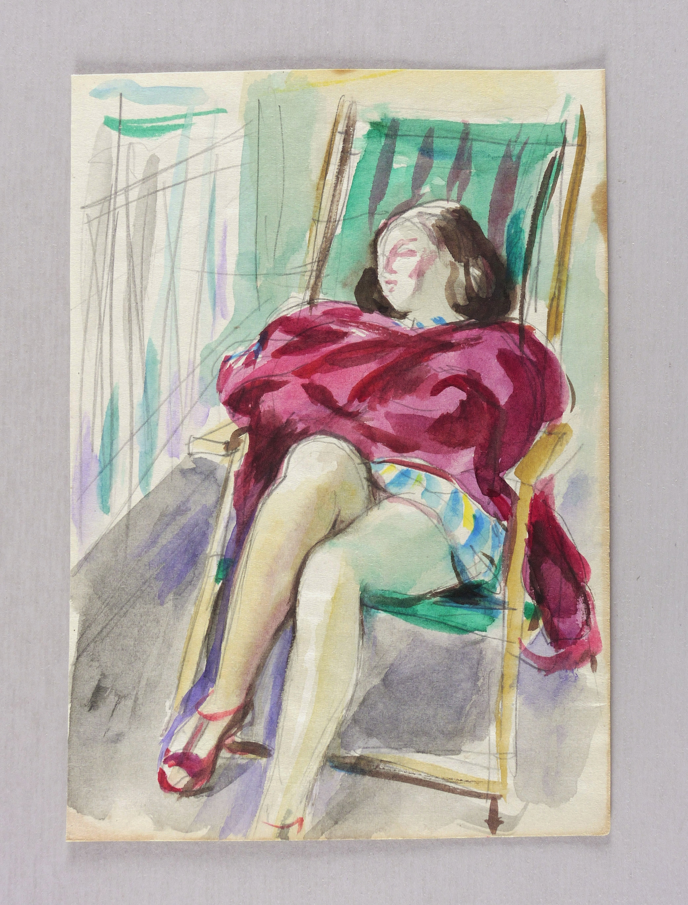Pukall, Egon. – „Schlafende im Liegestuhl”.