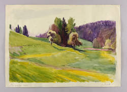Links in Bleistift bezeichnet und datiert: ″Plinzmühle 1983″. Rechts Signatur-Stempel des Künstler-Nachlass: ″Egon Pukall″. – Landschaft bei der sogenannten Plinzmühle in Plinz, heute Milda, im thüringischen Saale- Holzland-Kreis. – Partiell unscheinbar fleckig. Im Randbereich leichte Griffspuren. Guter Zustand.