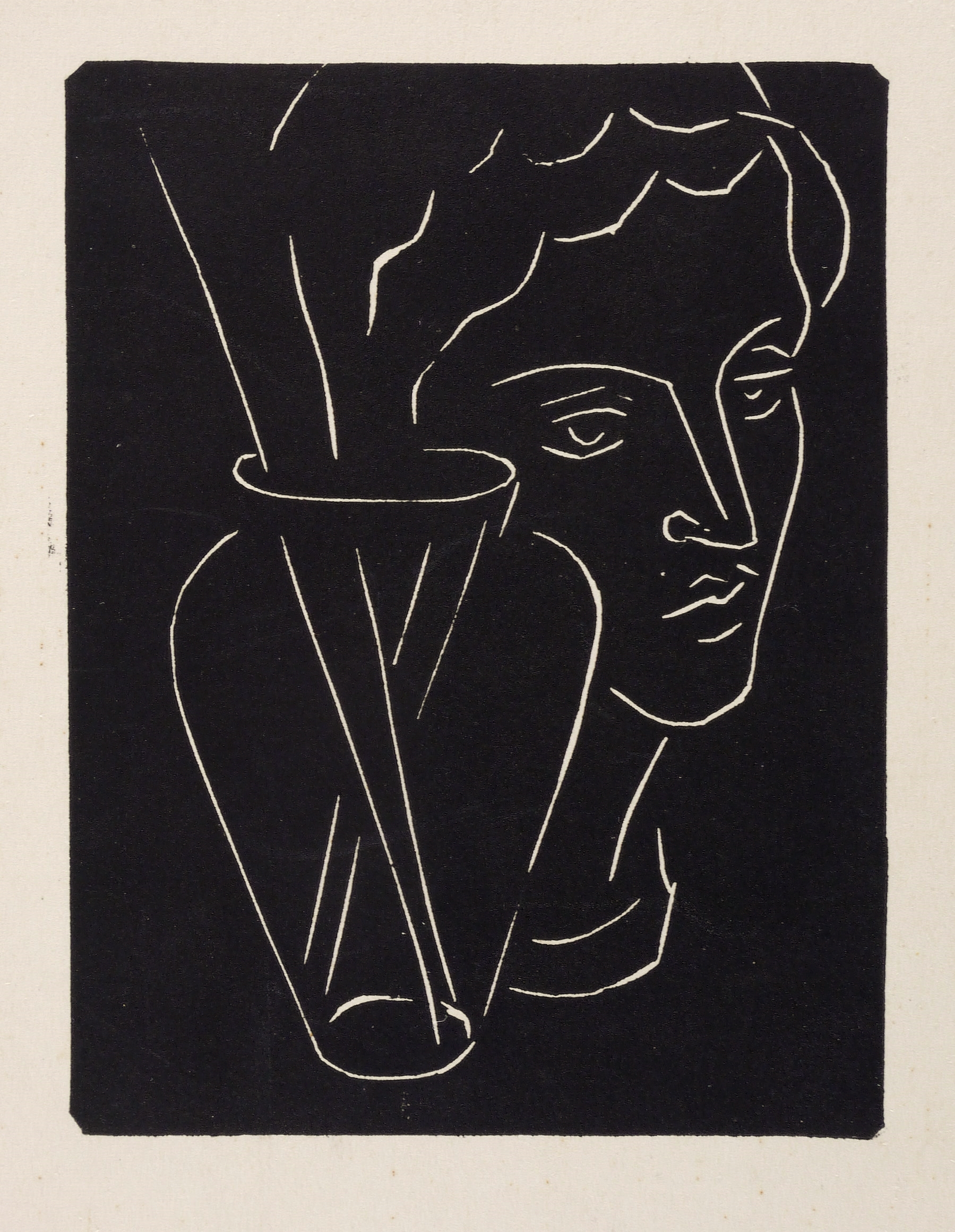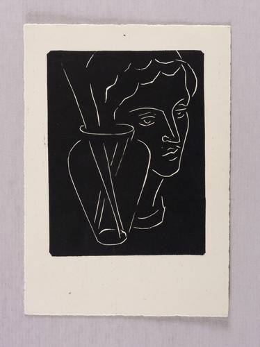 1980-1989. Holzschnitt / Weißlinienschnitt, in Schwarz, auf hellgelbem Postkarten-Karton. – Originale Künstlergrafik, von Egon Pukall. – 10,5 x 8,0 cm (Darstellung / Druckbild), 14,8 x 10,4 cm (Blatt).
