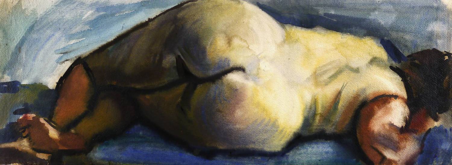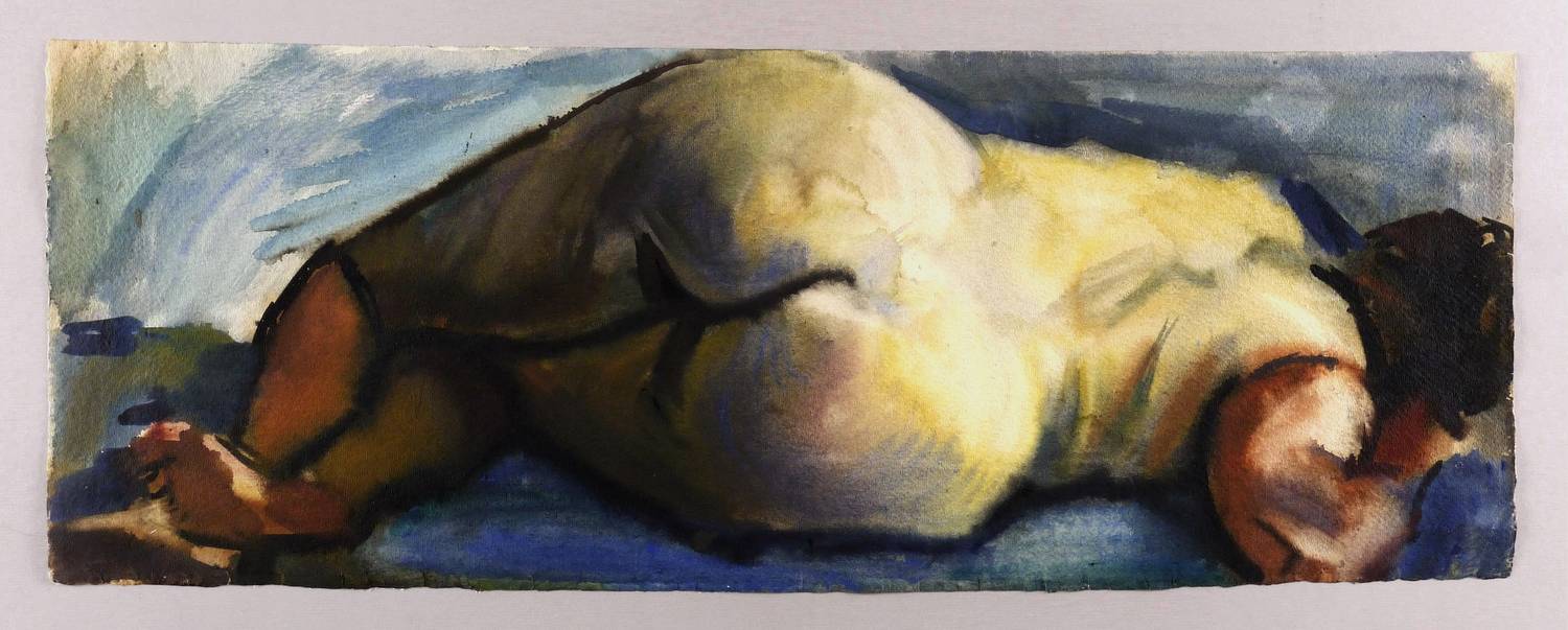 1966. Aquarell, auf hellgelbem rauem Aquarell-Bütten. – Originale Künstlergrafik, von Curt Querner. – Unikat. – 28,7 x 77,5 cm (Darstellung / Blatt).