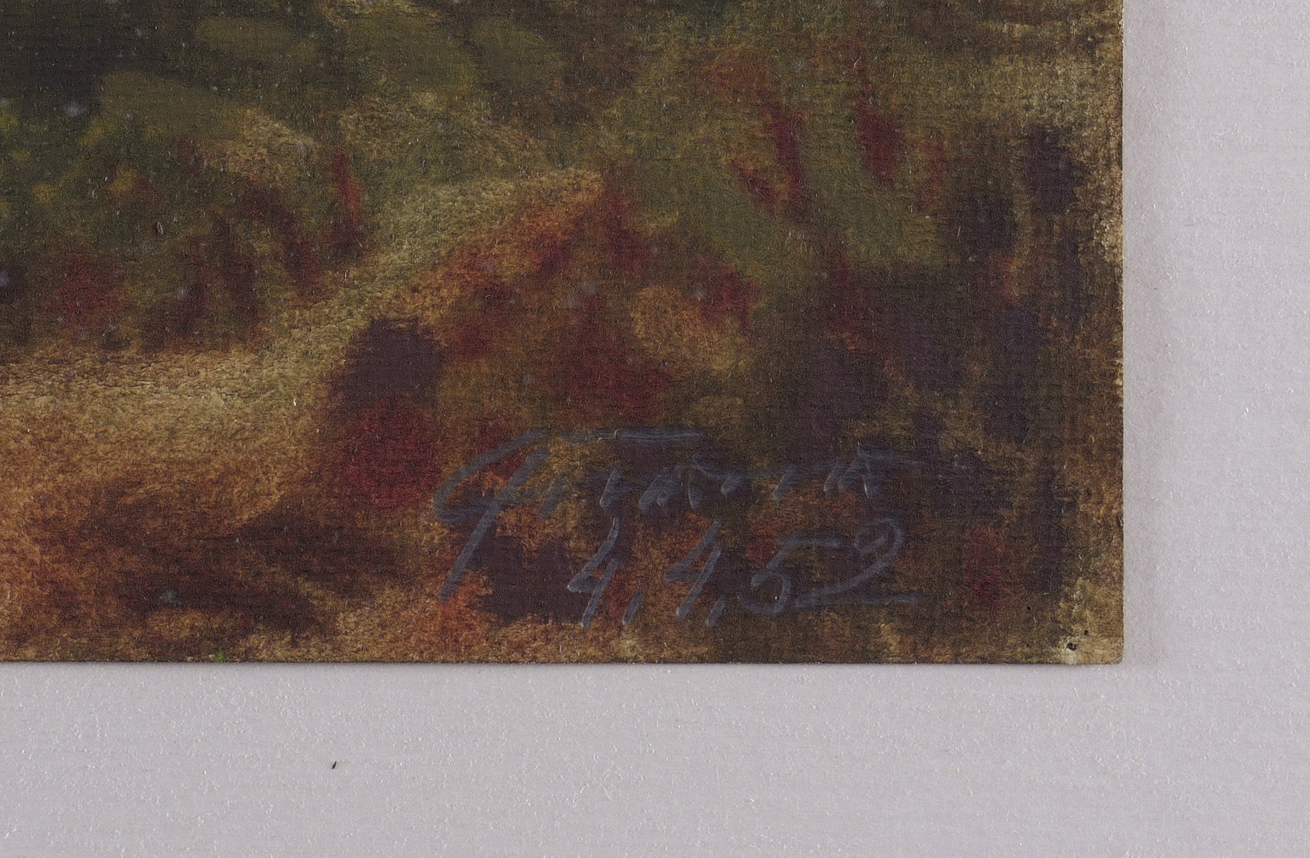 Dittrich B 380. – Rechts unten in Bleistift signiert und datiert: ″Querner 4.4.52″. Verso weiter eigenhändig bezeichnet: ″Querner Aquarell 1952 'Im Grunde'″. Dazu Qualitätssigel des Künstlers: ″XX″. – Provenienz: Privatbesitz Dresden. – In den Ecken originale Reißzwecklöchlein. Tadellos erhalten. Sehr guter Zustand.