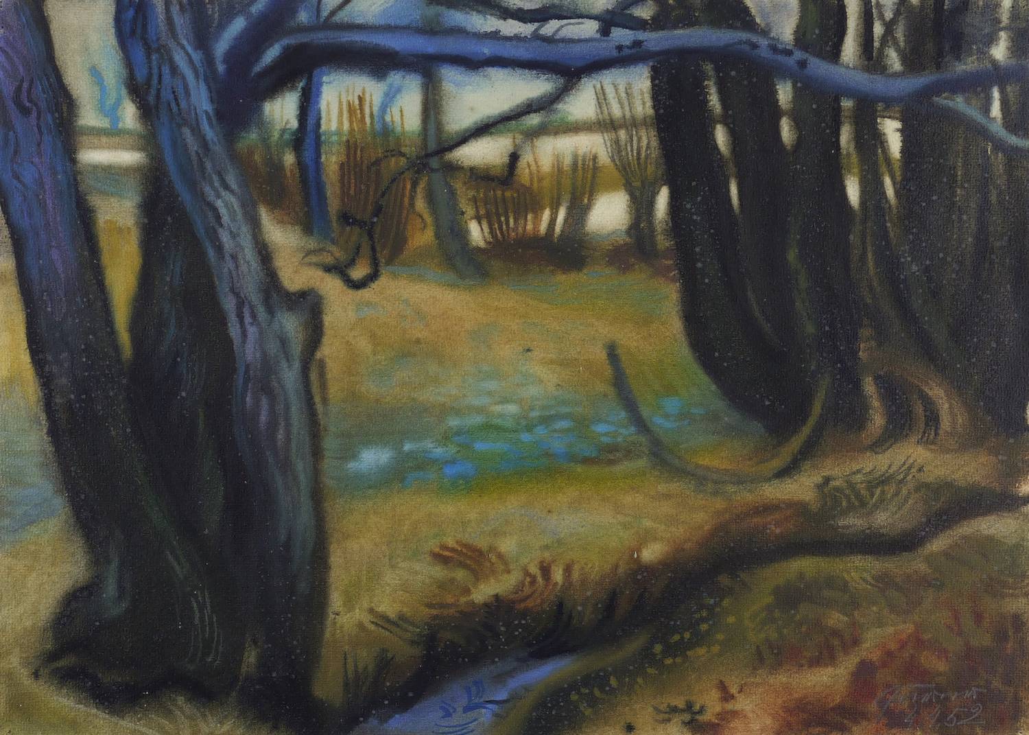 Querner, Curt. – „Bei Diebels Büschel, links drei Baumstämme (Im Grunde)”.