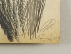 Dittrich C 415. – Rechts unten in Bleistift signiert und datiert: ″Qu. 17.12.61″. Verso eigenhändig Titel: ″Bäuerin nackt″. Dazu Qualitätssigel: ″X″. – In den Blattecken herstellungsbedingt diverse Reißzwecklöchlein. In den Blatträndern leicht gegilbt. Insgesamt guter Zustand.