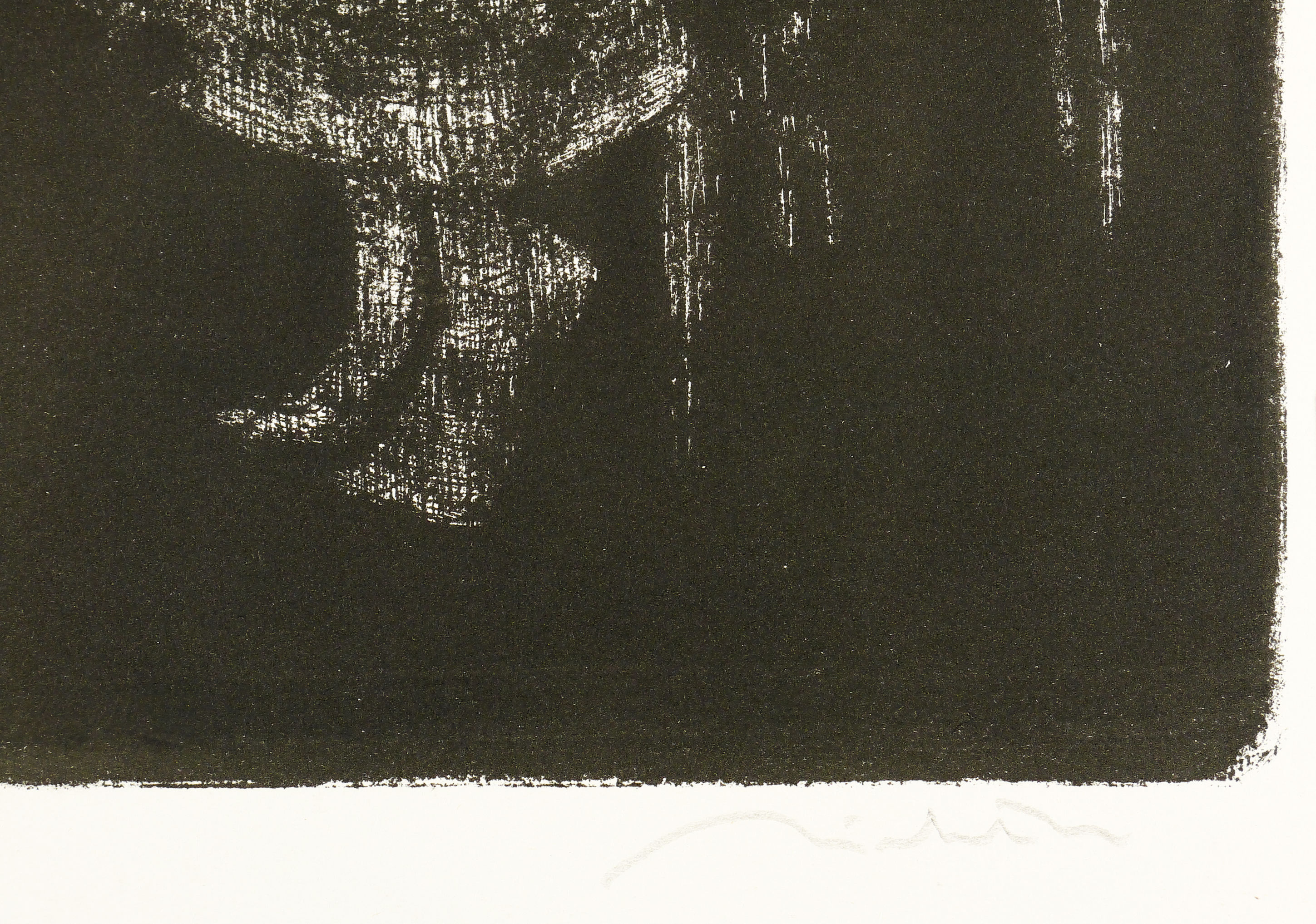 1960. Lithografie / Pinsel- und Federlithografie, in Schwarz, auf gelblichem Büttenpapier. – Originale Künstlergrafik, von Hans Theo Richter. – Auflage Exemplar Nr. 50/149. – 38,5 x 17,7 cm (Darstellung), 52 x 40 cm (Blatt).