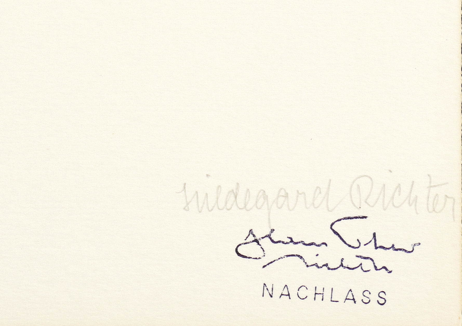 Schmidt 570. – Aus: Mappe 71. Mappen des Magdeburger Grafikkreises (Magdeburg: Grafikkreis 1971), Bd. 7. – Nicht handsigniert. Verso in Bleistift von Hildegard Richter signiert. Dazu Nachlass-Stempel und Auflagenbezeichnung. – Papier kaum merklich gegilbt. Guter Zustand.