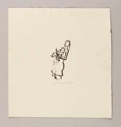1959. Lithografie / Federlithografie, in Dunkelbraun, auf festem gelbem Velin. – Originale Künstlergrafik, von Hans Theo Richter. – 8,1 x 4,0 cm (Darstellung / Druckbild), 21 x 20 cm (Blatt).