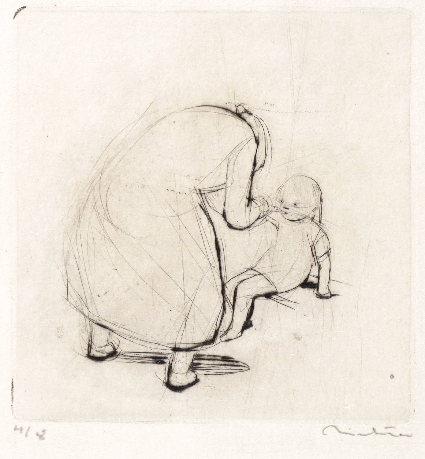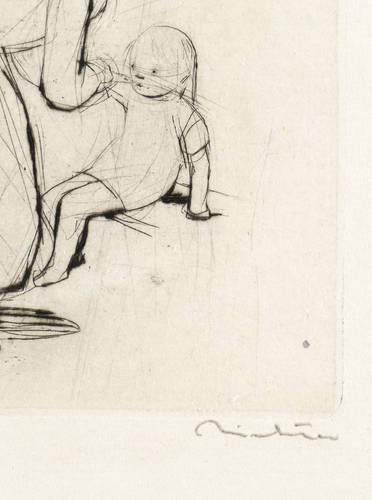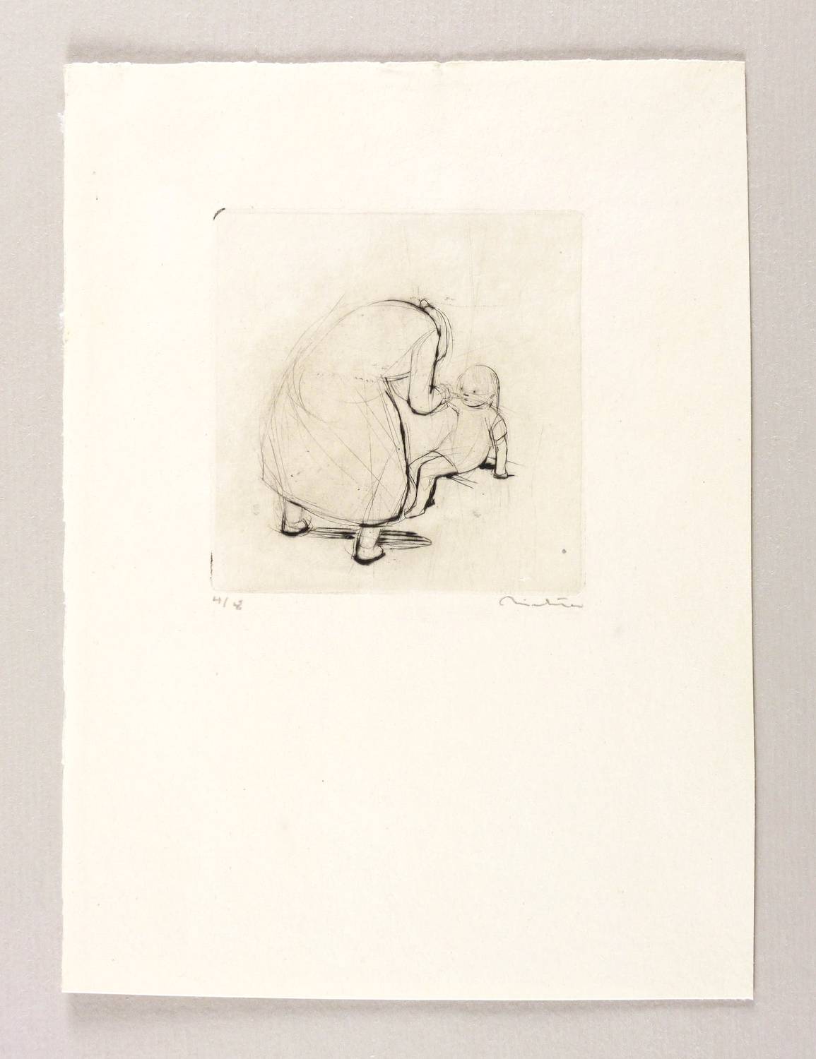 1942/1943. Radierung / Kaltnadel, mit Plattenton, in Schwarz, auf gelblichem Velinkarton. – Originale Künstlergrafik, von Hans Theo Richter. – Auflage Exemplar Nr. 4/8. – 8,8 x 8,6 cm (Darstellung / Platte), 22 x 16 cm (Blatt).