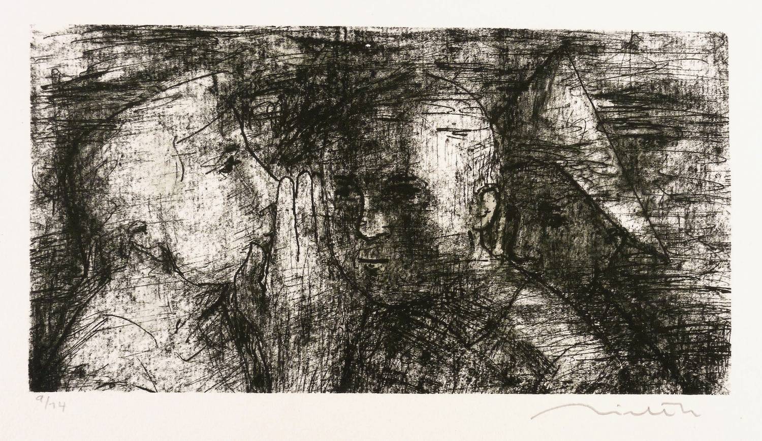 1968. Lithografie / Kreide- & Federlithografie, in Schwarz, auf hellchamois Velin. – Originale Künstlergrafik, von Hans Theo Richter. – Auflage Exemplar Nr. 9/14. – 14,1 x 26,8 cm (Darstellung / Druckbild), 27 x 39 cm (Blatt).