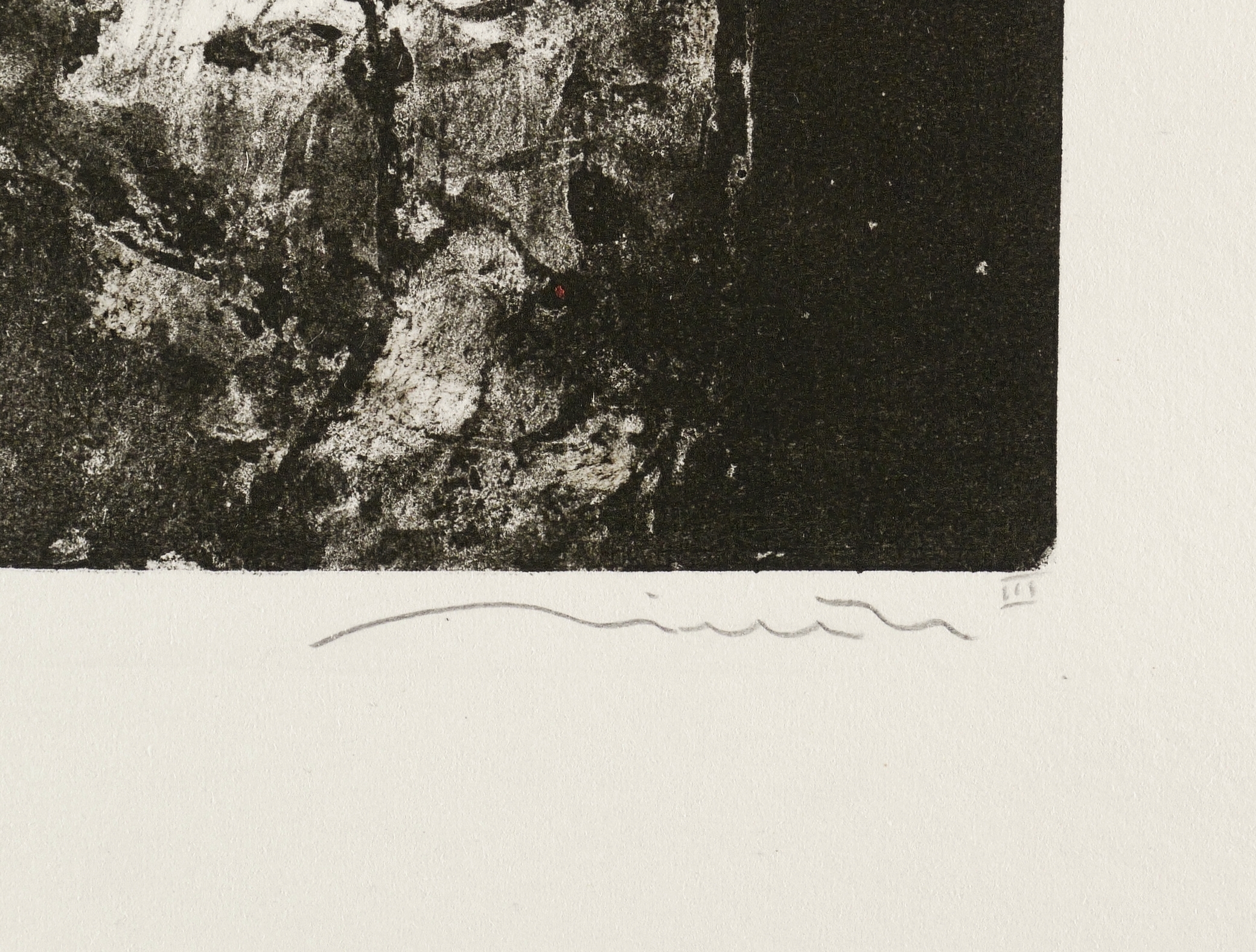 1964. Lithografie / Pinsel- und Kreidelithografie, in Schwarz, auf weichem hellgelbem Velin. – Originale Künstlergrafik, von Hans Theo Richter. – 22,1 x 21,7 cm (Darstellung / Druckbild), 38 x 31 cm (Blatt).