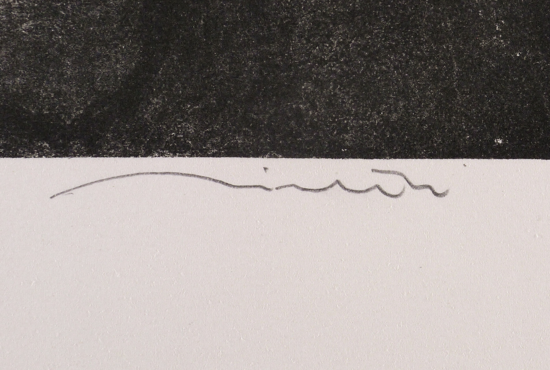 1964. Lithografie / Pinsel- und Kreidelithografie, in Schwarz, auf weichem hellgelbem Velin. – Originale Künstlergrafik, von Hans Theo Richter. – Auflage Exemplar Nr. 7/18. – 16,4 x 30,6 cm (Darstellung / Druckbild), 27 x 39 cm (Blatt).