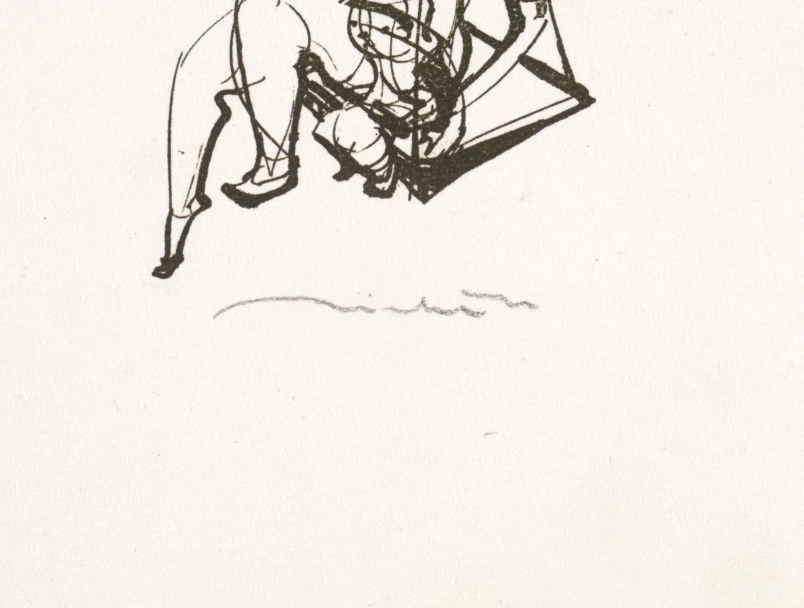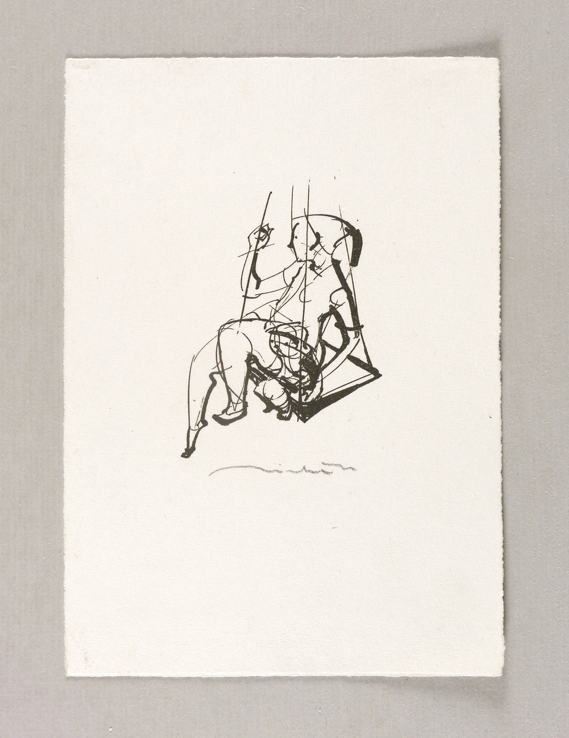 1962. Lithografie / Federlithografie, in Schwarz, auf hellchamois Velin. – Originale Künstlergrafik, von Hans Theo Richter. – 8,5 x 6,2 cm (Darstellung / Druckbild), 20 x 14 cm (Blatt).