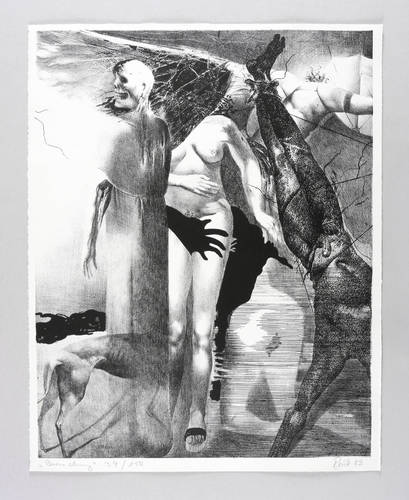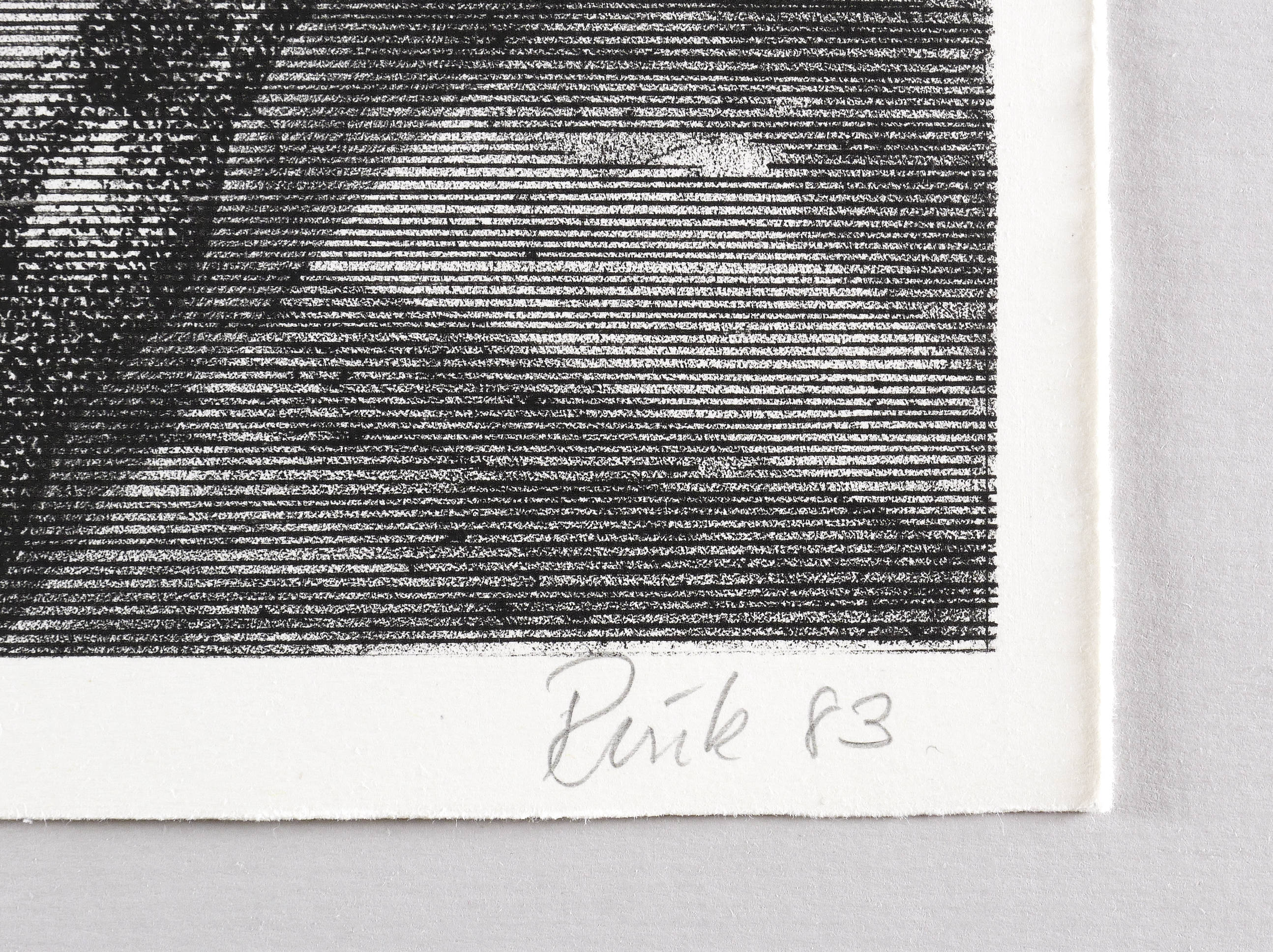 Rechts unten in Bleistift signiert und datiert: ″Rink 83″. Links Titel und Auflagenbezeichnung: ″Versuchung // 39/150″. – Hauptmotiv sowohl des malerischen wie auch des druckgrafischen Schaffens des Künstlers. – Tadellos erhalten. Sehr guter Zustand.