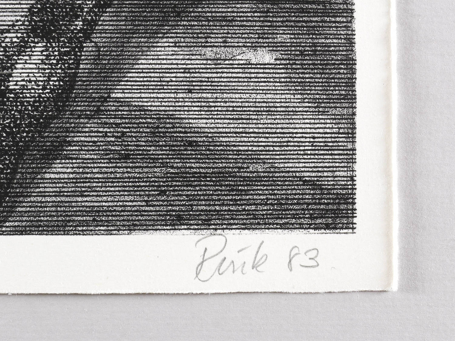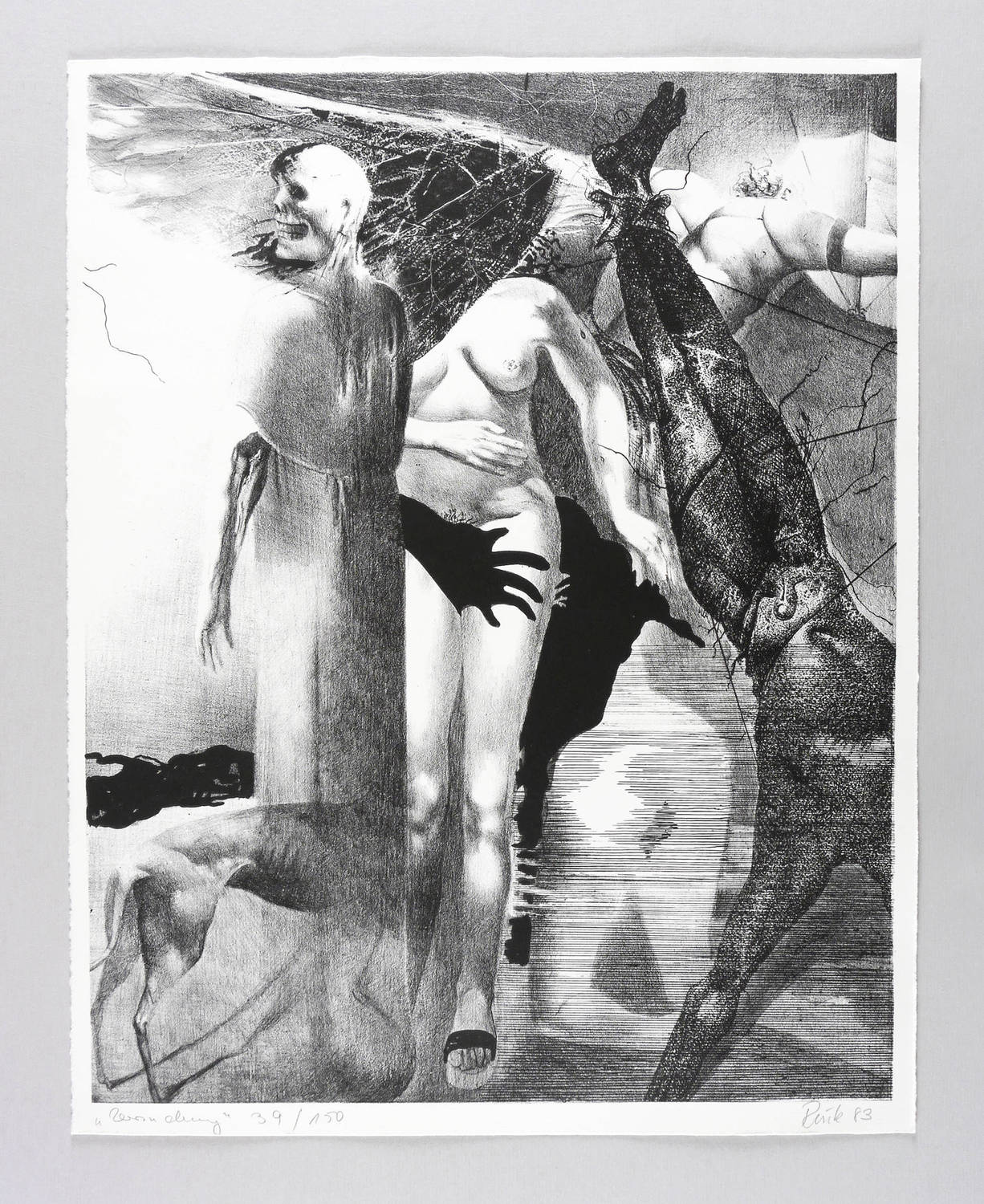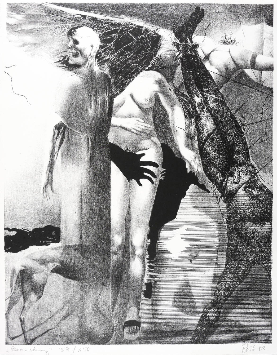 1983. Lithografie / Kreide-, Feder- & Pinsellithografie, in Schwarz, auf hellchamois Hahnemühle. – Originale Künstlergrafik, von Arno Rink. – Auflage Exemplar Nr. 39/150. – 48,1 x 37,8 cm (Darstellung), 51 x 40 cm (Blatt).