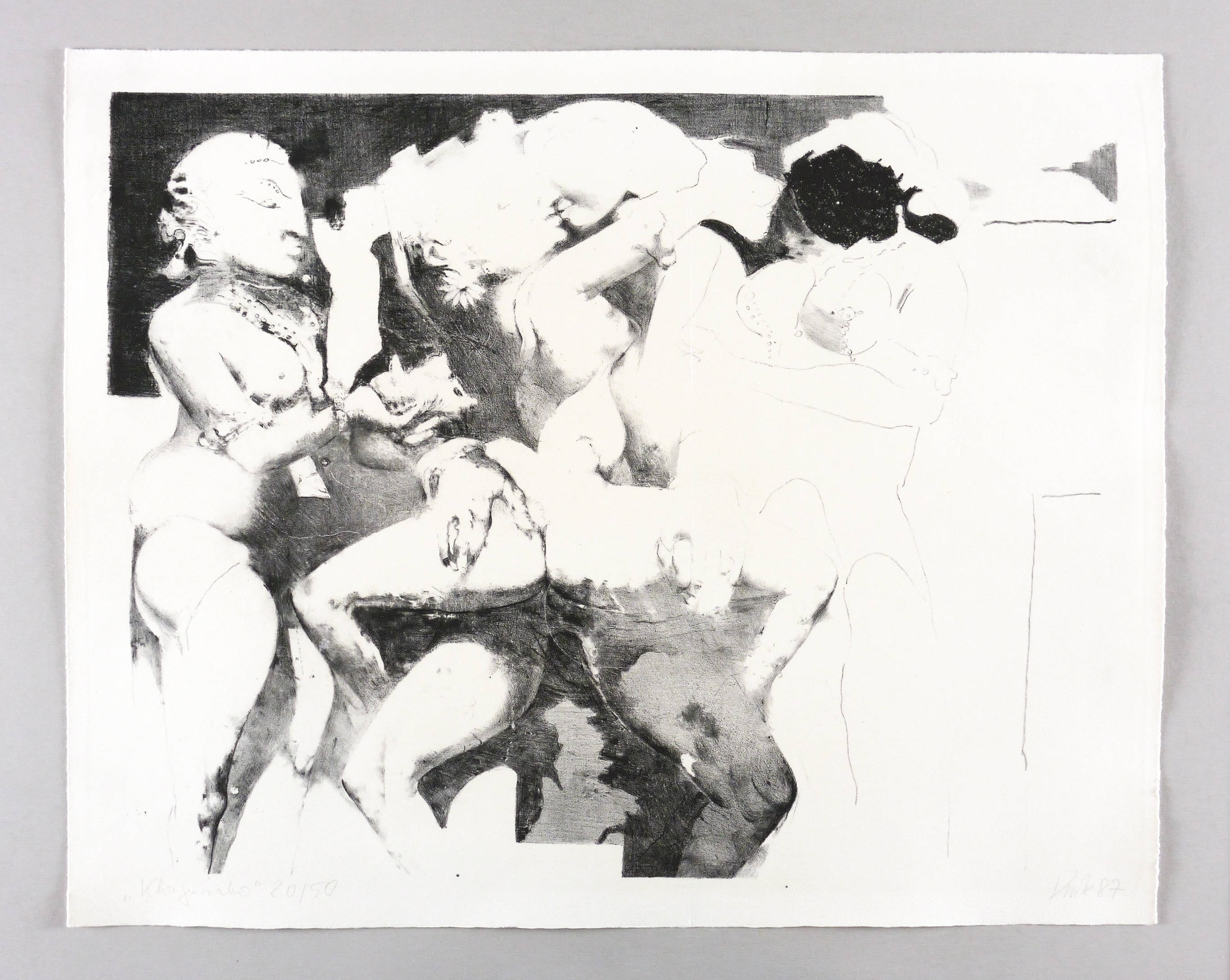 Aus: Sechste Leipziger Grafikmappe. Erotica (Leipzig: Galerie am Thomaskirchhof 1987). – Rechts unten in Bleistift signiert und datiert: ″Rink 87″. Links Titel und Auflagenbezeichnung: ″'Khajoraho' 20/50″. – Tadellos erhalten. Original für Mappe einfach vertikal gefaltet; Falz weitgehend geglättet. Sehr guter Zustand.